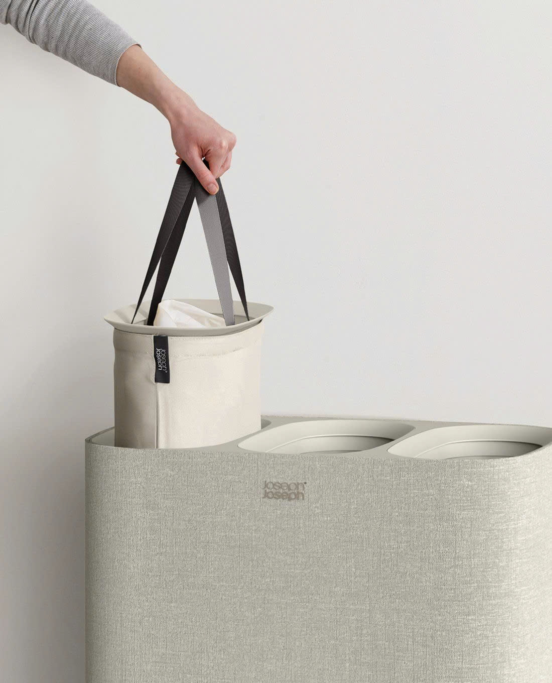 ✨Thùng Đựng Đồ Giặt 3 Ngăn Có Quai Xách Joseph Joseph 50021 Tota Trio 90L Màu Kem Hàng chính hãng