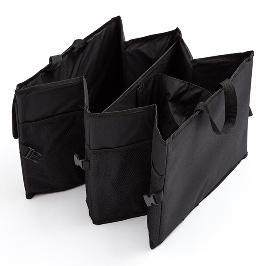 Hộp để đồ đa năng gấp gọn ở cốp sau xe hơi ô tô. Khi không dùng gấp gọn lại như 1 chiếc túi xách kích thước 40x26cm, khi kéo ra thành hộp đồ lớn