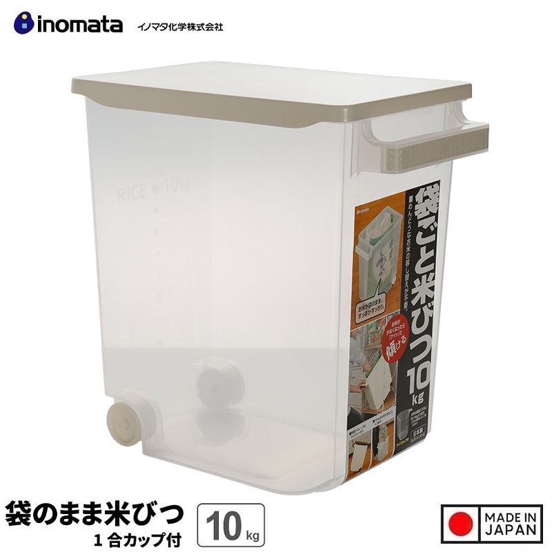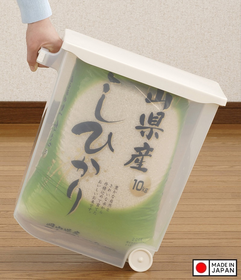 Thùng gạo nắp bật Inomata Kikubari 6kg ■ Xuất xứ: Nhật Bản | MADE IN JAPAN ■ Kích thước: • 270 x 344 x 149 Hmm ■ Màu sắc: Màu trắng ngọc trai ■ Chất liệu: - Nhựa