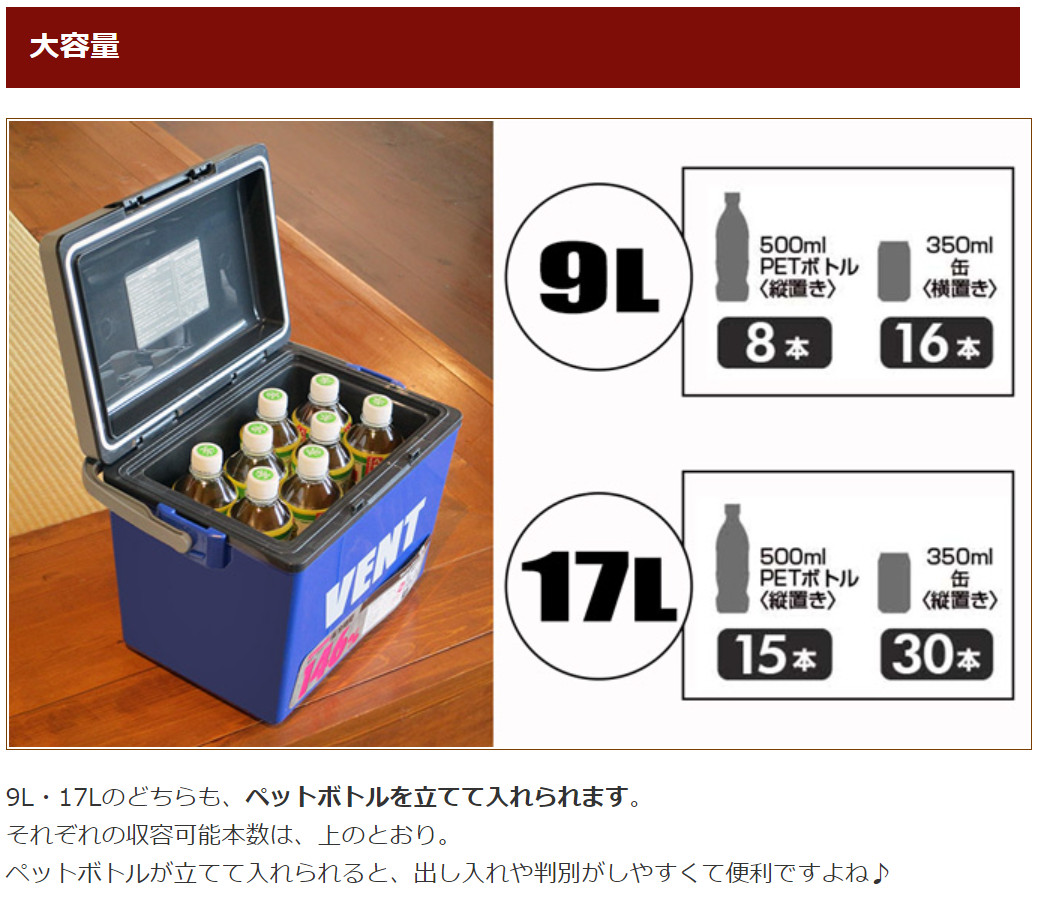 Loại nhỏ gọn có thể chứa được 16 lon 350 ml và 08 chai PET 500 ml.