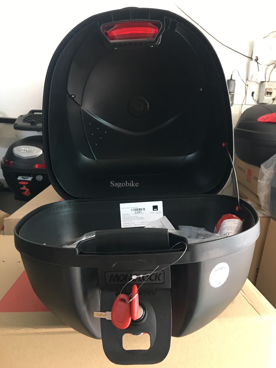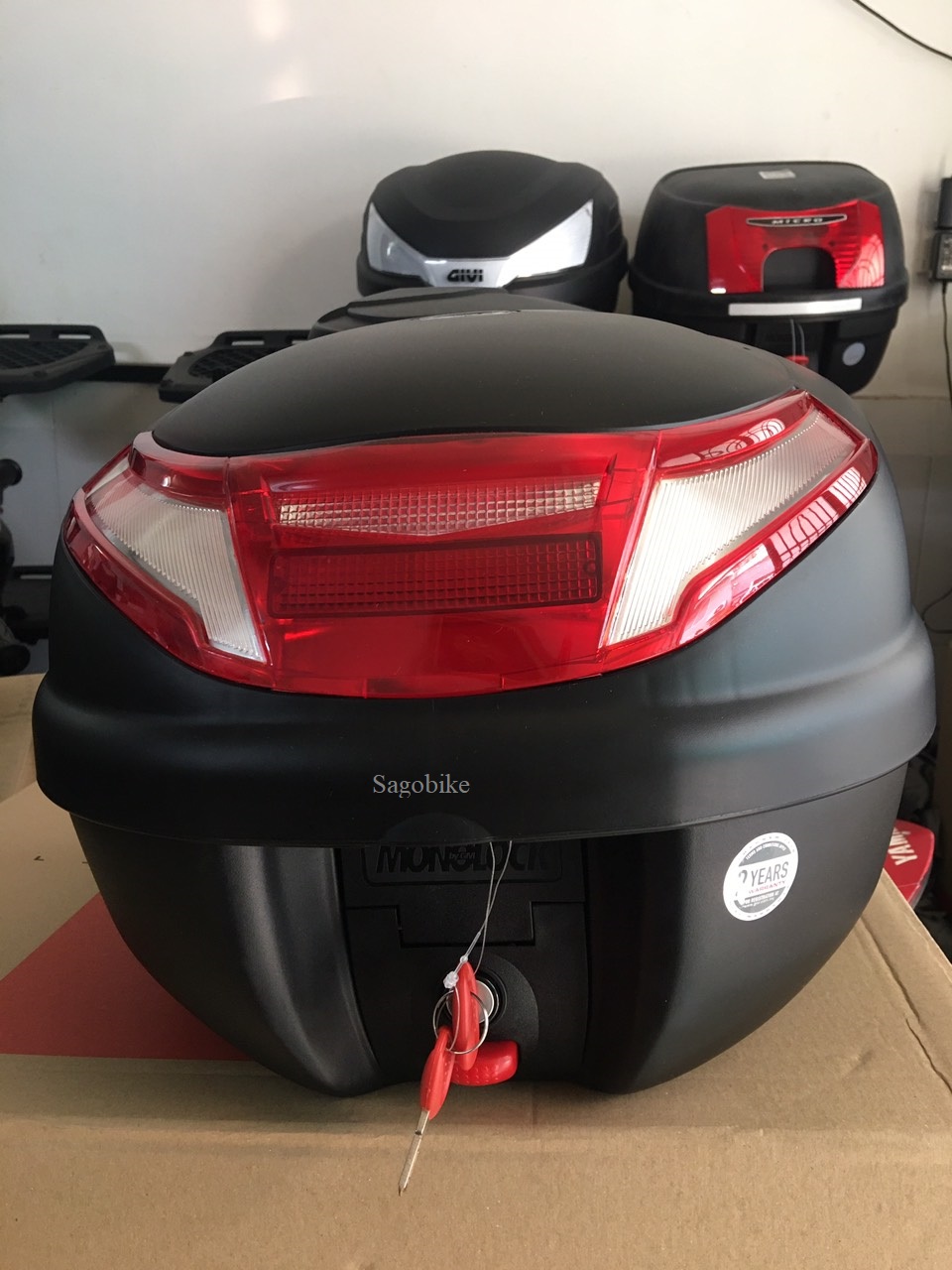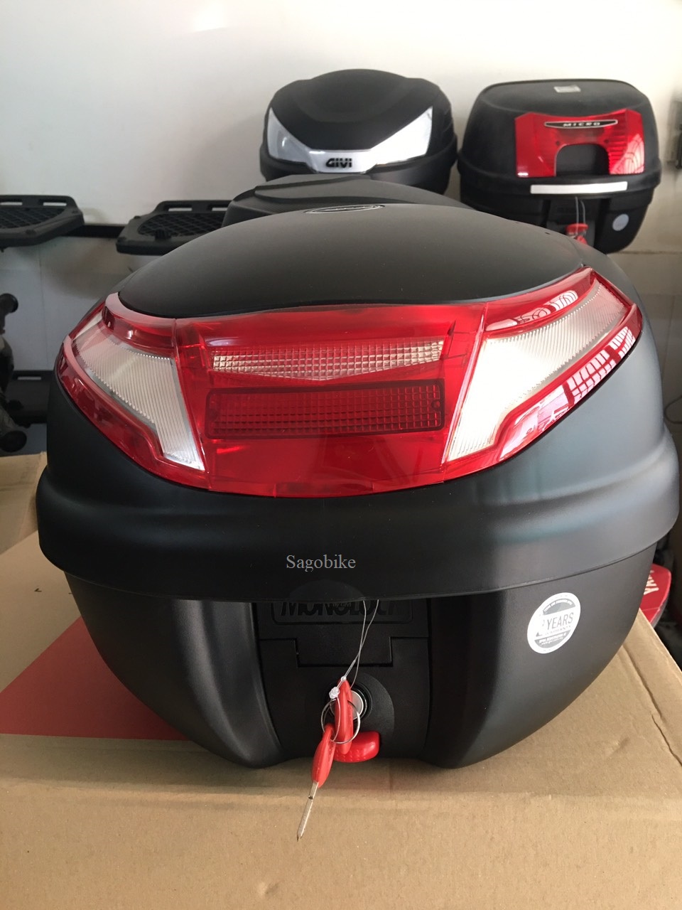Thùng Givi E30RN mẫu thùng tròn dạng vỏ sò, thiết kế góc cạnh, có điểm nhấn chữ logo Givi sang trọng, dung tích 30 lít to rộng, thùng E30RN được làm từ nhựa PP nguyên sinh, độ bền cao chịu được mưa nắng, chất liệu nhựa dẻo, không bị mài mòn, không dòn, không dễ vỡ, nhựa siêu bền, an toàn thân thiện với môi trường, thùng sử dụng công nghệ khóa monolock, khóa dễ dàng sử dụng với nút bấm nhẹ nhàng, an toàn cho các bạn khi cần một cốp xe vừa đựng đồ và vừa có khóa để bạn an tâm hơn, thùng có hai chìa khóa đi kèm, vô cùng chất lượng và tiện lợi, thoải mái đựng nón bảo hiểm trùm đầu, vật dụng cá nhân cũng như laptop, phù hợp cho đi làm hằng ngày và những chuyến đi chơi dã ngoại. Bộ thùng tiêu chuẩn gồm thùng E30RN mới, đế nhựa MP60N, bộ ốc vít đi kèm đều làm trau chuốt có roăn cao su bên trong nên vô cùng chắc chắn và không bị bung ra khi xe di chuyển với tốc độ cao, chống rung tuyệt đối, tờ hướng dẫn sử dụng.