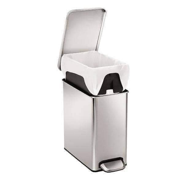 Hình dạng mỏng và bản lề vô hình của thùng rác này làm cho nó hoàn hảo trong không gian chật hẹp. Khe đựng túi nilong tích hợp bên trong giúp việc thay túi nilong