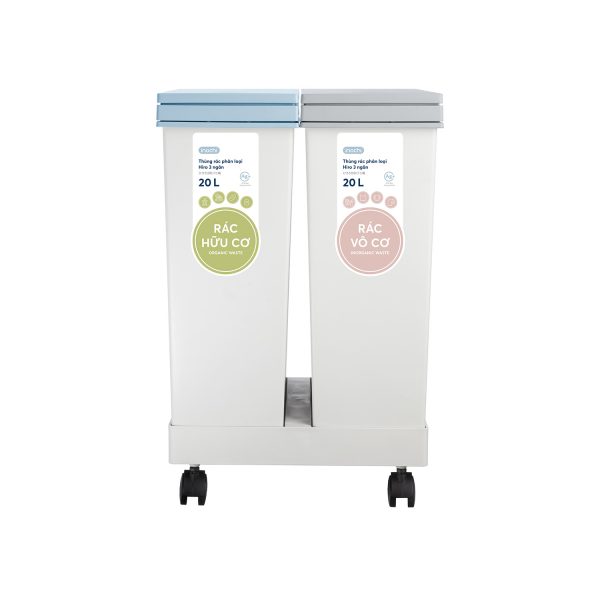 Mua tại TiktokThùng rác phân loại Hiro 2 ngăn Mã SP: HIN.RAPL.002N Kích thước: 358x336x530 mm Khối lượng: 2445 g Chất liệu: Nhựa PP, PA nguyên sinh, hạt màu, phụ gia kháng khuẩn (Ag+), lò xo Màu sắc: Xanh nhạt + Ghi sữa HƯỚNG DẪN SỬ DỤNG: Dùng để đựng và phân loại rác trong gia đình, văn phòng, nhà hàng,… BẢO QUẢN: nơi khô ráo, thoáng mát. Tránh xa nguồn nhiệt ƯU ĐIỂM: Thiết kế hiện đại, dễ dàng tháo lắp và vệ sinh, bánh xe di động giúp di chuyển dễ dàng