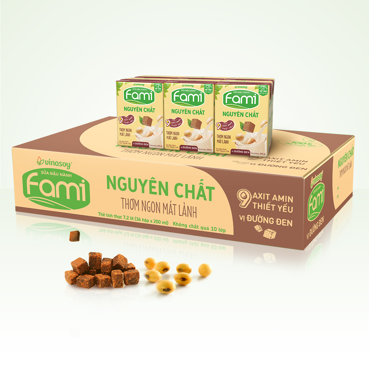 - Thùng Sữa đậu nành Fami nguyên chất vị đường đen (200ml x 36 Hộp) được làm từ 100% đậu nành hạt chọn lọc, không biến đổi Gen (Non - GMO) kết hợp với kết hợp với chiết xuất đường đen, mang đến trải nghiệm mới lạ từ Hương vị ngọt thanh rất theo kịp xu hướng khẩu vị của giới trẻ hiện nay và là nguồn cung cấp dinh dưỡng thiết yếu từ thực vật, tốt cho sức khỏe khi sử dụng hàng ngày.