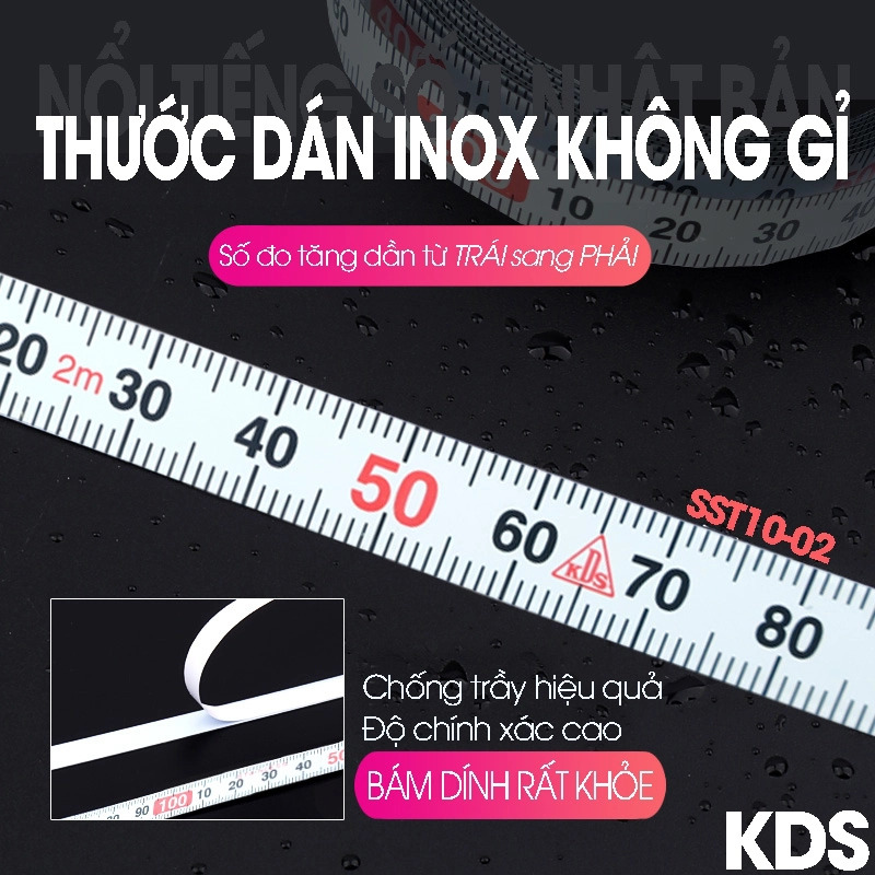 - Dây thước dán SST10-02 làm từ Inox cao cấp được tráng nhựa acrylic có tác dụng chống trầy, không bị tạo nếp gấp, có khả năng chống nước và hóa chất, cho bạn thời gian sử dụng lâu dài với độ bền cao. CÁCH SỬ DỤNG THƯỚC DÁN KDS: