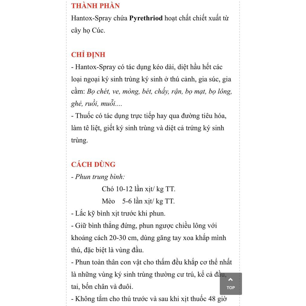 ✨Thuốc trị ve, ghẻ, chấy, rận, bọ chét trên chó mèo HANTOX dạng xịt 300ml