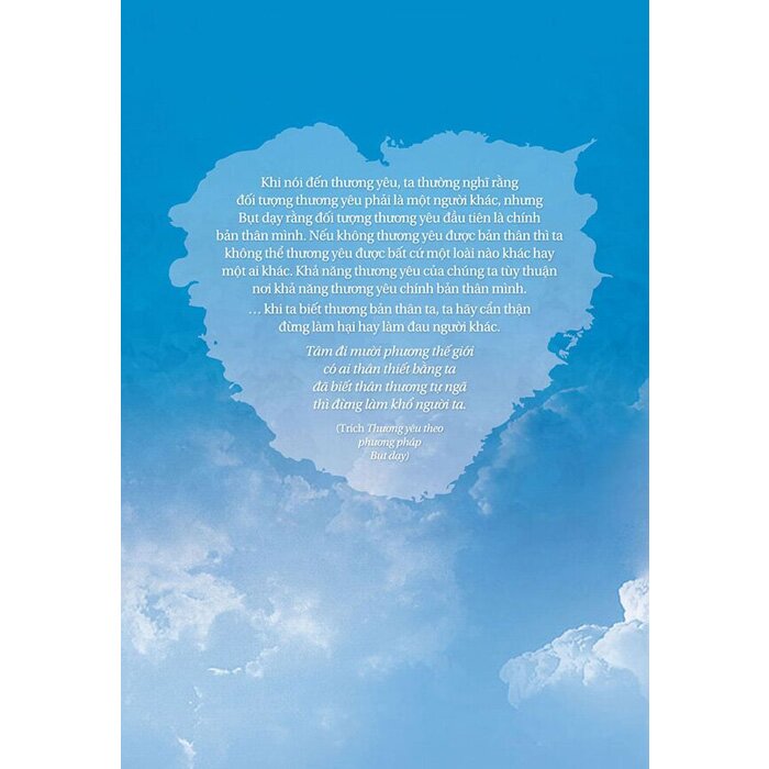 Khi nói đến thương yêu, ta hay nghĩ rằng đối tượng thương yêu là một người khác. Từ nhỏ chúng ta cũng được dạy rằng phải yêu thương người khác, thậm chí đến quên mình, đó được ca ngợi là đức hy sinh. Nhưng Bụt dạy rằng đối tượng thương yêu đầu tiên phải là chính bản thân mình. Nếu không thương yêu được bản thân thì ta không thể thương yêu được bất cứ ai khác.