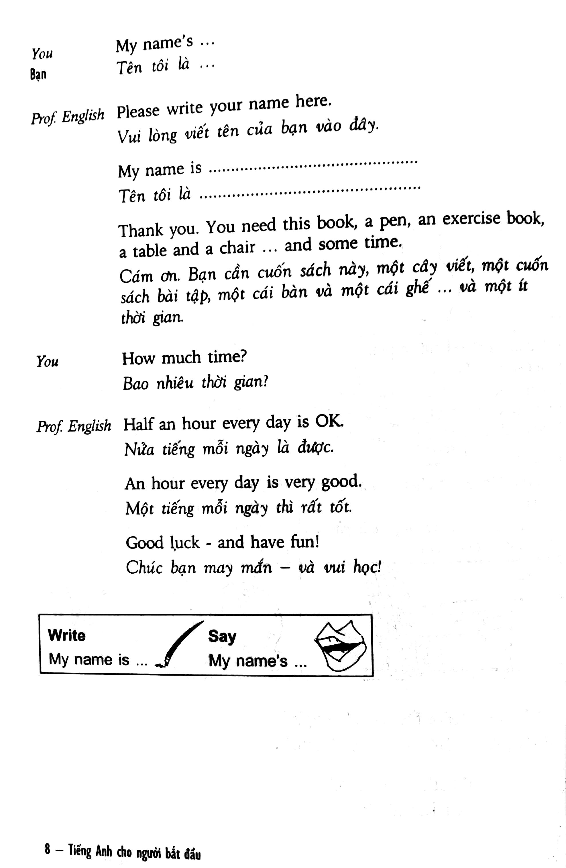 Ngoài ra, cuốn sách này được dùng kèm với đĩa CD ghi giọng của người bản ngữ. Vì vậy, các bạn nên chú ý cách phát âm, ngữ điệu của người bản ngữ ngay từ đầu và tập nghe cách phát âm tiếng Anh. Sau đó, các bạn hãy bắt chước, lặp lại theo CD và luyện nói.