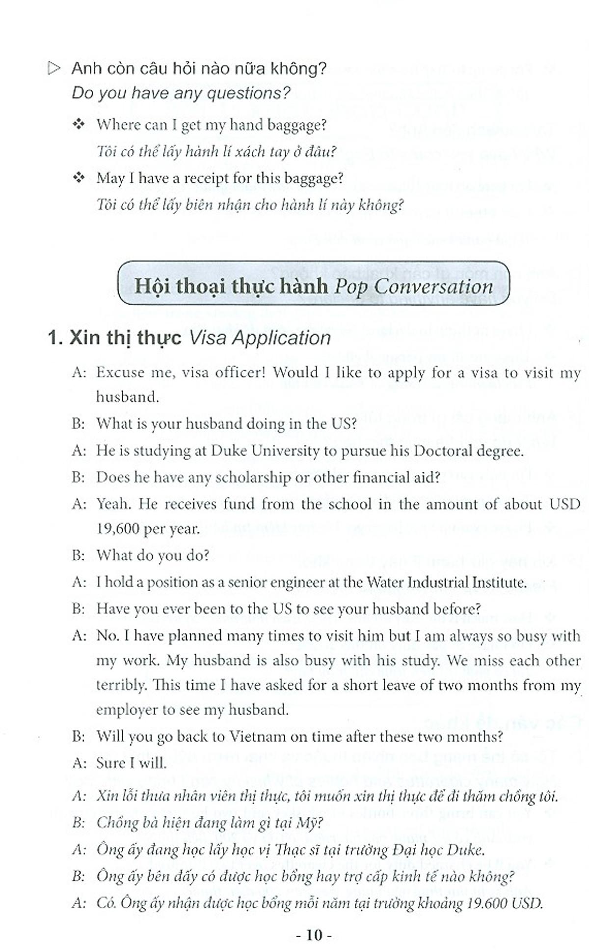 Bộ sách này sẽ là tài liệu hữu ích cho bạn. Bộ sách gồm 2 tập. Tập 1 bao gồm các chủ đề đàm thoại về cuộc sống gia đình, tình yêu và hôn nhân, giao tiếp xã hội, và cuộc sống sinh hoạt hằng ngày. Các chủ đề đàm thoại ở Tập 2 đi sâu vào các lĩnh vực như giao thông, dịch vụ khách sạn, học tập và giải trí, thể thao, du lịch, nghề nghiệp, và thương mại.
