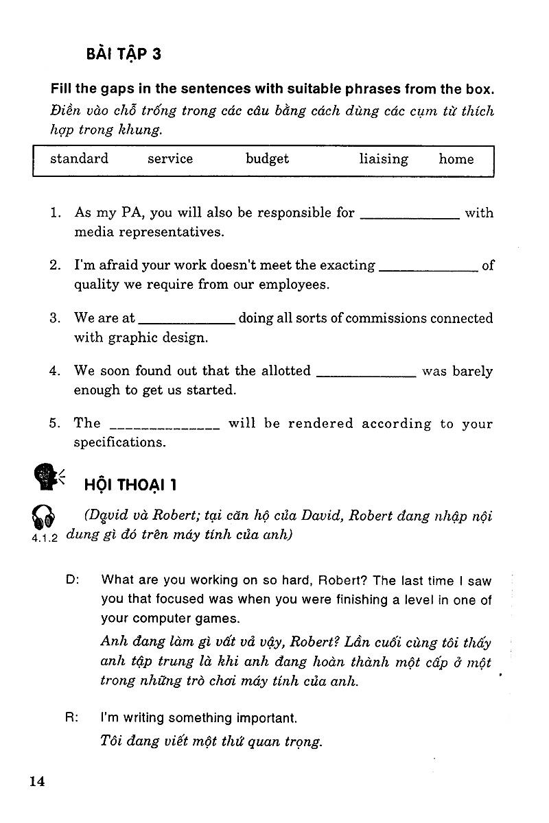 Mỗi quyển bao gồm những bài học và thực hành tiếng Anh kinh doanh thực tiễn dành cho tất cả những ai muốn nâng cao vốn từ vựng tiếng Anh chuyên ngành nhất là những nhân viên đang làm việc trong môi trường quốc tế muốn trau dồi thêm kỹ năng giao tiếp tiếng Anh để nắm vững những nghiệp vụ cơ bản mà mình đang làm.