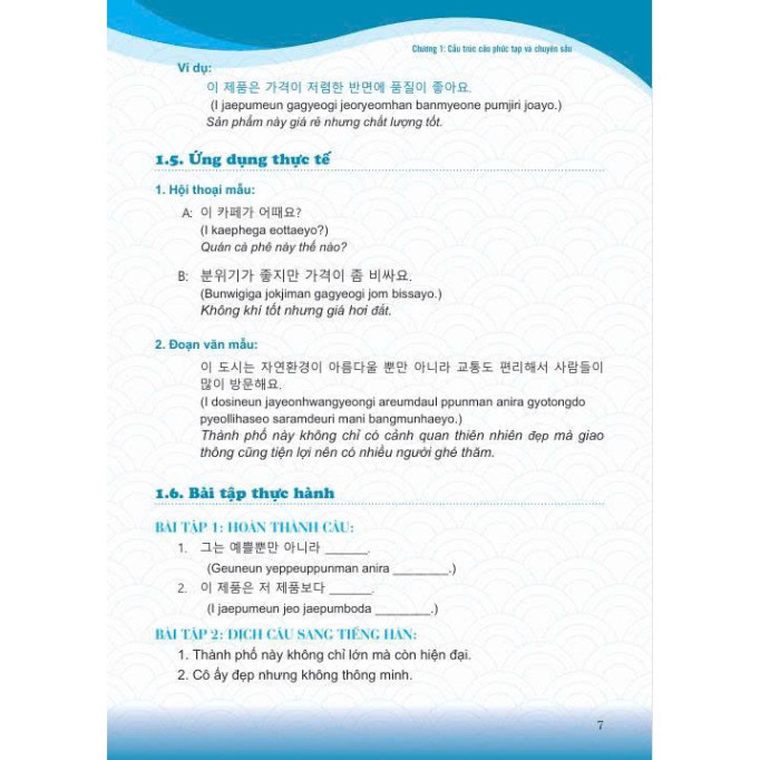 Chào mừng bạn đến với cuốn sách Tiếng Hàn thực chiến nâng cao. Đây là một cột mốc quan trọng trong hành trình học tiếng Hàn của bạn, khi bạn bước qua những “bậc thang” kiến thức cơ bản để bắt đầu khám phá ngôn ngữ ở cấp độ cao hơn và sâu sắc hơn. Việc đạt đến trình độ cao cấp là bước tiến lớn, giúp bạn sử dụng ngôn ngữ không chỉ để giao tiếp hàng ngày mà còn trong nhiều lĩnh vực và tình huống phức tạp hơn. Cuốn sách này được thiết kế với mục tiêu đồng hành cùng bạn trong quá trình phát triển kỹ năng ngôn ngữ một cách toàn diện. Nội dung sách bao gồm các bài học về ngữ pháp, từ vựng và các mẫu hội thoại thực tế. Từng chương được xây dựng để bạn dần nắm vững các chủ điểm quan trọng như cách sử dụng câu phức, câu điều kiện, kính ngữ, và cách biểu đạt cảm xúc, suy nghĩ trong nhiều bối cảnh khác nhau. Bên cạnh đó, bạn sẽ được tiếp cận với các chủ đề phong phú về văn hóa Hàn Quốc từ phong tục tập quán, lối sống, cho đến các giá trị truyền thống và hiện đại. Những kiến thức này không chỉ giúp bạn hiểu sâu hơn về ngôn ngữ mà còn kết nối với văn hóa và con người Hàn Quốc một cách chân thực hơn. Học một ngôn ngữ ở trình độ cao cấp đòi hỏi sự kiên nhẫn, tập trung và luyện tập liên tục. Cuốn sách này sẽ cung cấp cho bạn những công cụ cần thiết để luyện tập, từ các bài tập ngữ pháp chi tiết đến các bài hội thoại mô phỏng tình huống thực tế.