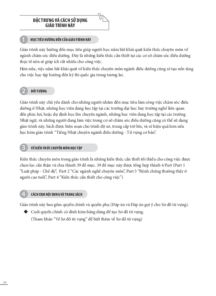 Nằm trong bộ sách “Tiếng Nhật chuyên ngành điều dưỡng”, bao gồm “Từ vựng cơ bản”, “Kiến thức cơ bản” và “Kiến thức đời sống và Giao tiếp”. Quyển "Kiến thức cơ bản" này là
