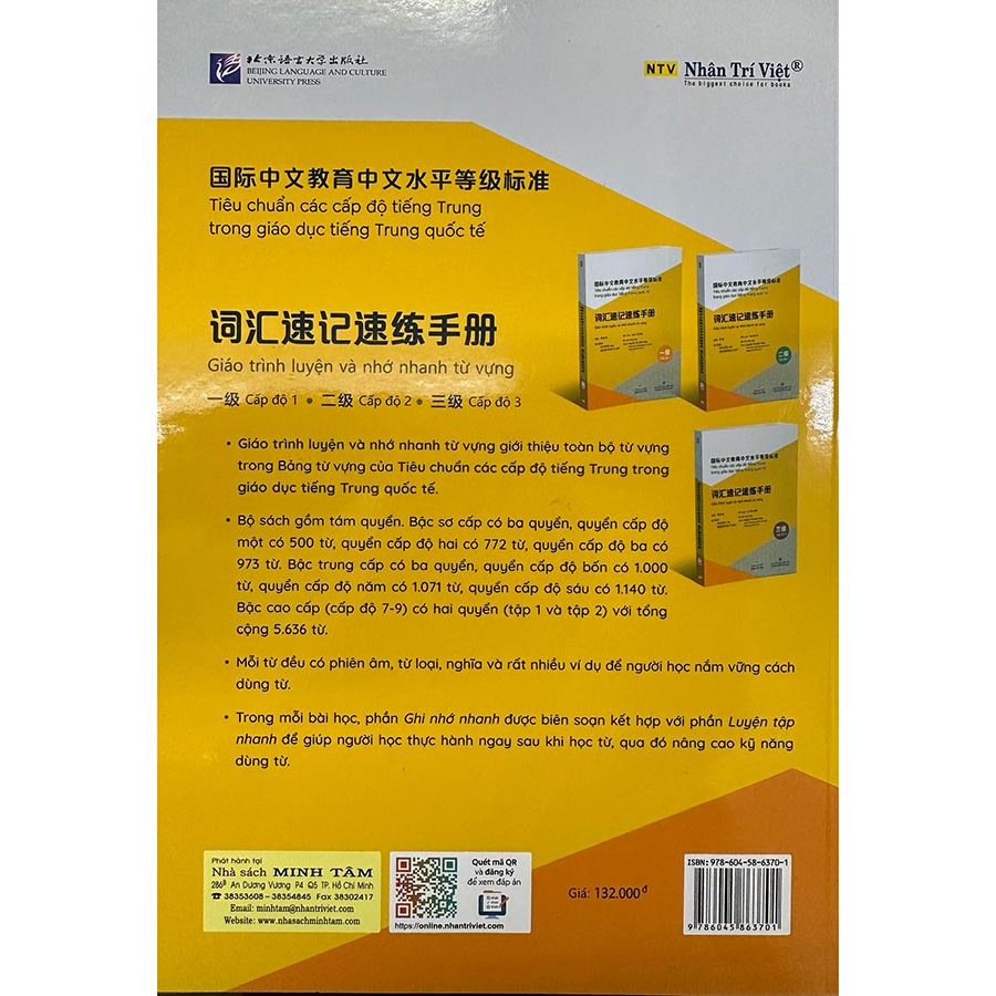 Giáo trình luyện và nhớ nhanh từ vựng giới thiệu toàn bộ tự vựng trongBảng từ vựng của Tiêu chuẩn các cấp độ tiếng Trung trong giáo dục tiếng Trung quốc tế.
