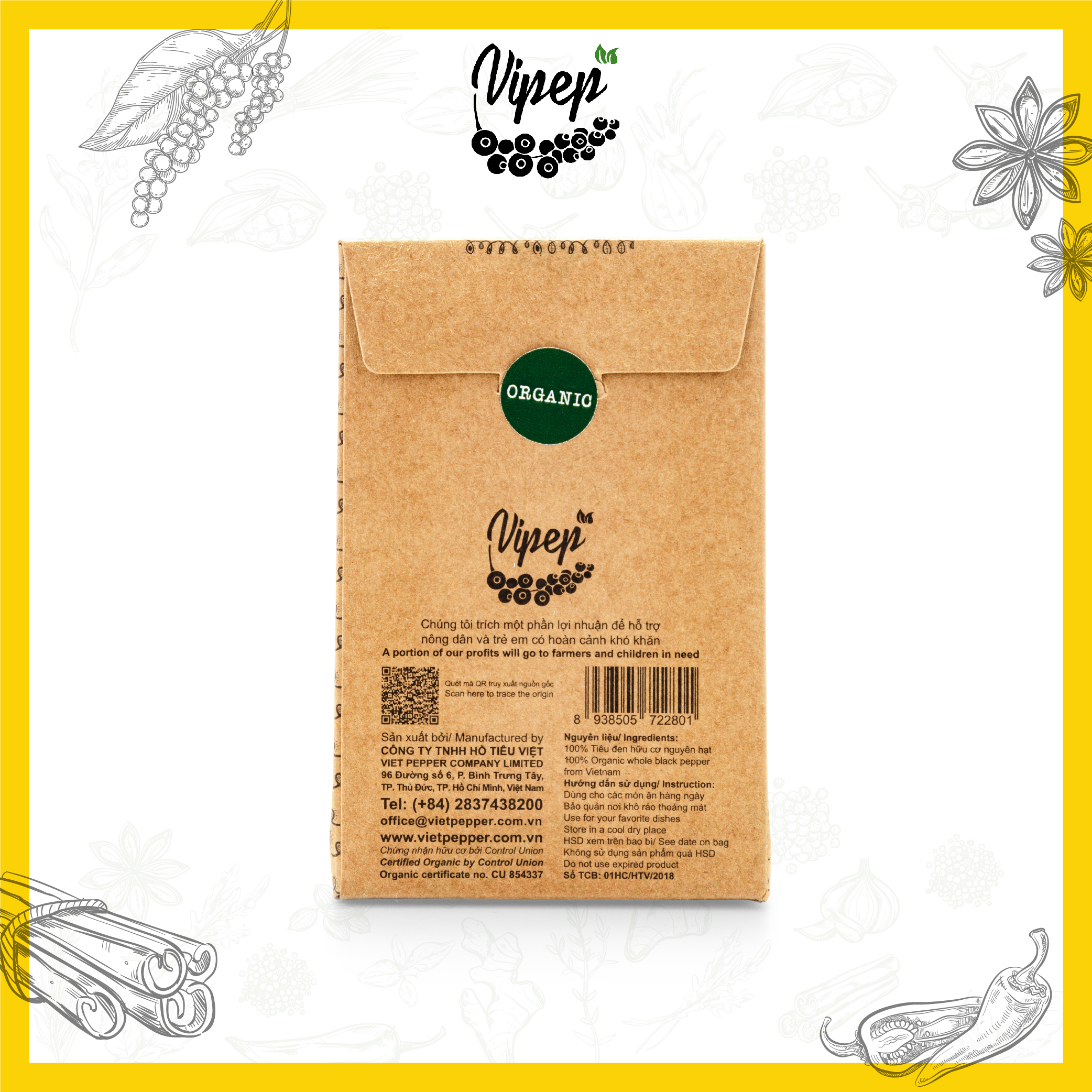 ✨Tiêu Đen Hạt Farmers' Organic Vipep Túi Giấy 50g