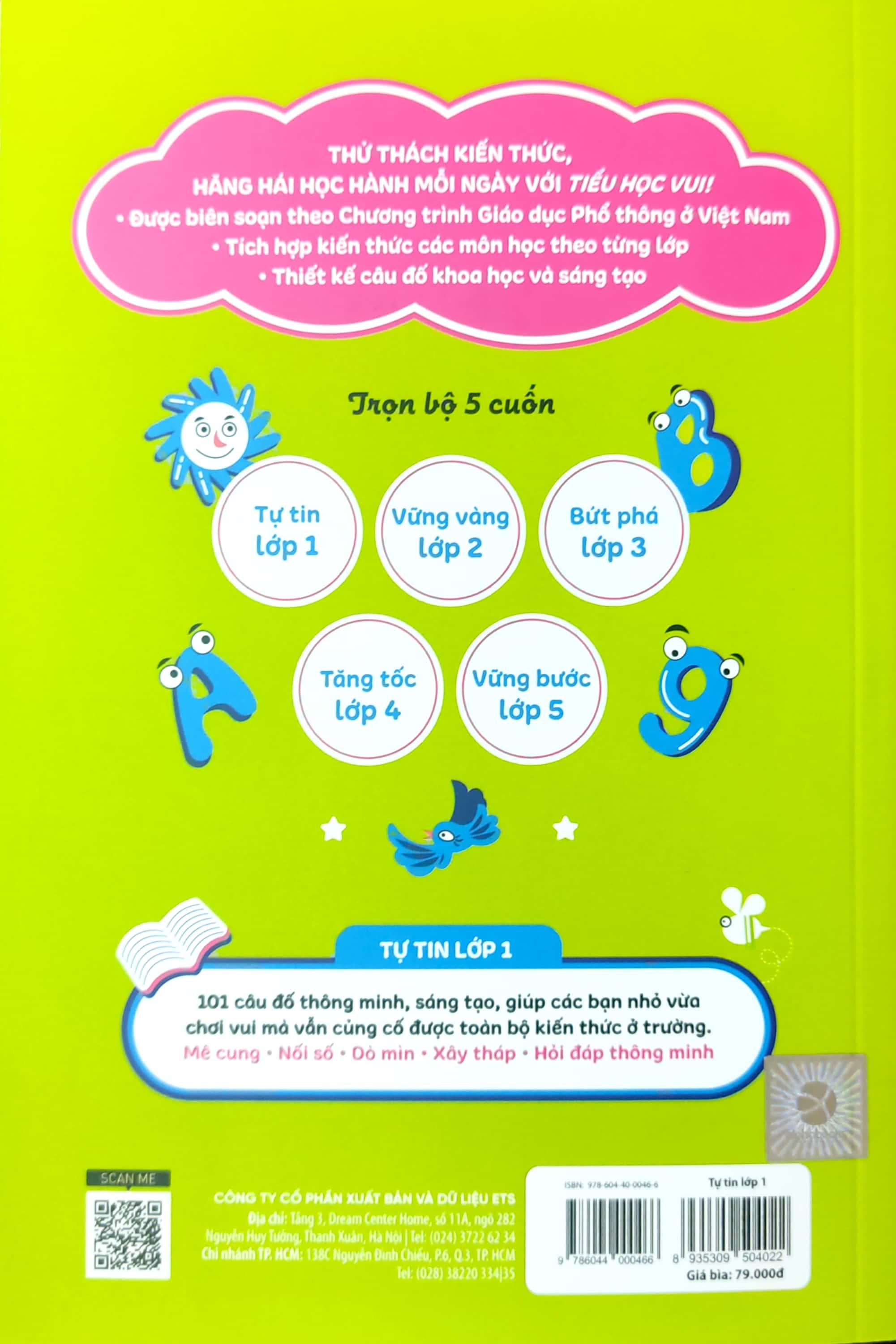 Tiểu Học Vui - Tự Tin Lớp 1 - 101 Câu Đố Rèn Trí Não Luyện Kỹ Năng Được biên soạn dựa theo Chương trình Giáo dục Phổ thông dành cho học sinh tiểu học, bộ sách Tiểu học vui gồm 5 cuốn tương ứng từ lớp 1 đến lớp 5: Tự tin lớp 1, Vững vàng lớp 2, Bứt phá lớp 3, Tăng tốc lớp 4, Vững bước lớp 5. Tiểu học vui – Tự tin lớp 1 bao gồm 101 câu hỏi trong mỗi cuốn sách tổng hợp kiến thức của các môn học lớp 1: