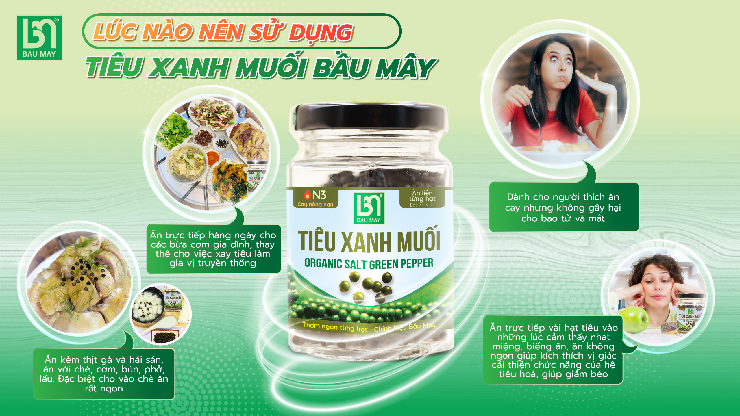 THÔNG TIN VỀ SẢN PHẨM Sản phẩm từ thành phần tự nhiên, không chất bảo quản, không phẩm màu Đã qua kiểm định an toàn vệ sinh thực phẩm Mang đến cho món ăn thêm