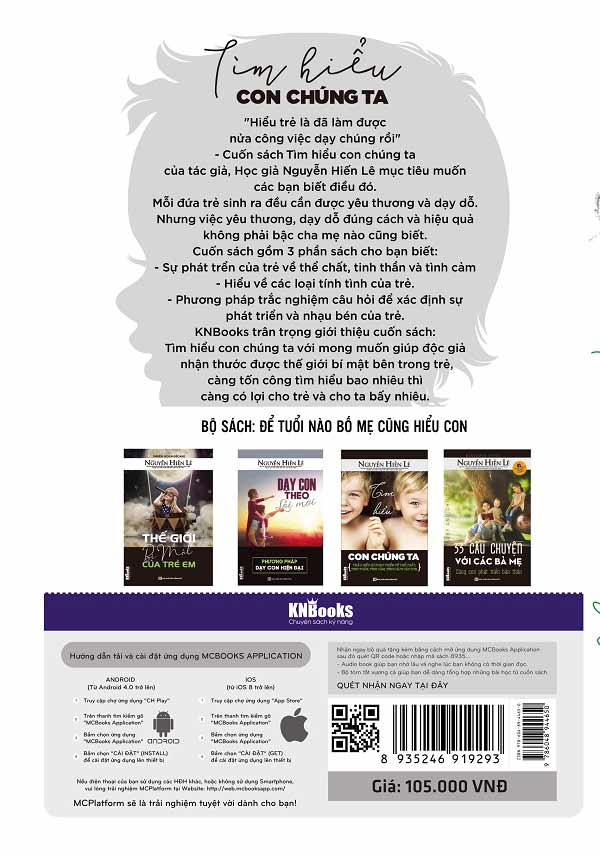 - Trẻ là cả một thế giới bí mật, giữa cha mẹ và con như có một bức màn ngăn cách, bạn cố gắng mãi mà chẳng tìm được cách vén bức màn đó lên. Vì thế con bạn đẻ ra nhưng nhiều lúc bạn không hiểu được nó đang nghĩ gì hay muốn gì. Các cha mẹ càng tìm hiểu con nhiều bao nhiêu thì càng có lợi cho trẻ và cho cha mẹ bấy nhiêu. Với mong muốn giúp độc giả nhận thức được thế giới bí mật bên trong trẻ, KNBooks - Chuyên sách kỹ năng trân trọng giới thiệu tới các bậc cha mẹ cuốn sách: Tìm hiểu con của chúng ta. Đây là một trong 8 cuốn của bộ sách Che mẹ khéo con thành công của tác giả Nguyễn Hiến Lê sẽ giúp các bậc làm cha làm mẹ có thêm nhiều kiến thức để nuôi dạy con thành tài. Đây là cuốn sách của học giả Nguyễn Hiến Lê, ông là một tác giả, dịch giả truyền cảm hứng nhất Việt Nam từ những năm 1950. Ông đã chuyển ngữ nhiều cuốn sách phát triển bản thân nổi tiếng, được nhiều thế hệ yêu thích, nhưng có lẽ Đắc Nhân Tâm chính là dấu son nổi bật nhất mà ông đem tới cho độc giả Việt Nam. Nguyễn Hiến Lê được độc giả Việt đánh giá là “người đi trước thời đại” bởi ông là người có con mắt nhìn xa trông rộng. Những cuốn sách của ông được xuất bản vào những năm 1950 nhưng giá trị của nó dù đang sống ở thời đại nào chúng ta vẫn đều áp dụng được. Và cuốn sách Tìm hiểu con của chúng ta của bộ sách cha mẹ khéo con thành công cũng không ngoại lệ. Cuốn sách “Tìm hiểu con của chúng ta” gồm 3 phần sau:
