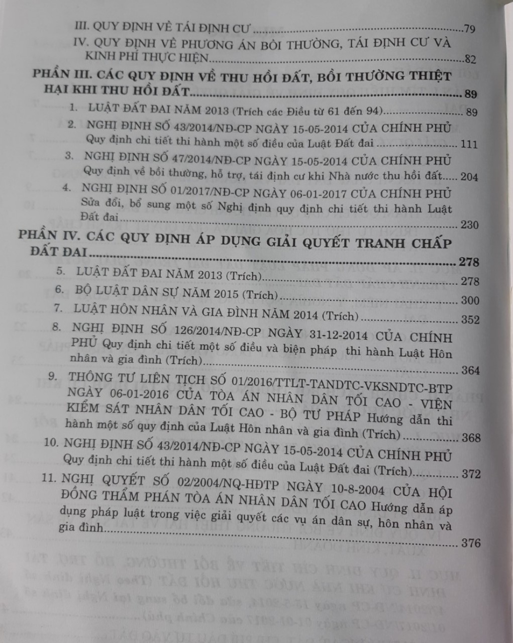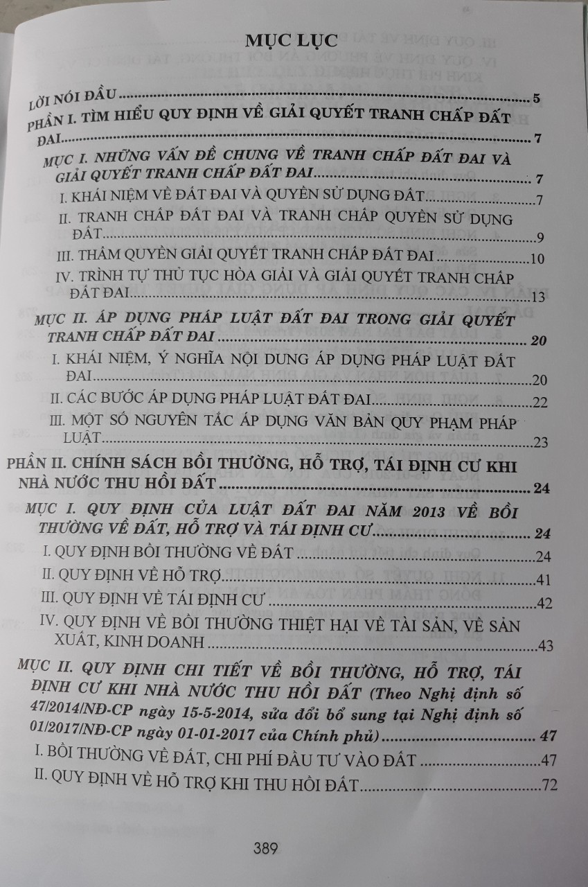 Tìm Hiểu Công Cụ Pháp Lý Hữu Hiệu Về Đền Bù, Giải Tỏa, Giải Quyết Tranh Chấp Đất Đai Cuốn sách gồm năm phần: Phần I: Bình luận Một số nội dung đổi mới, tác