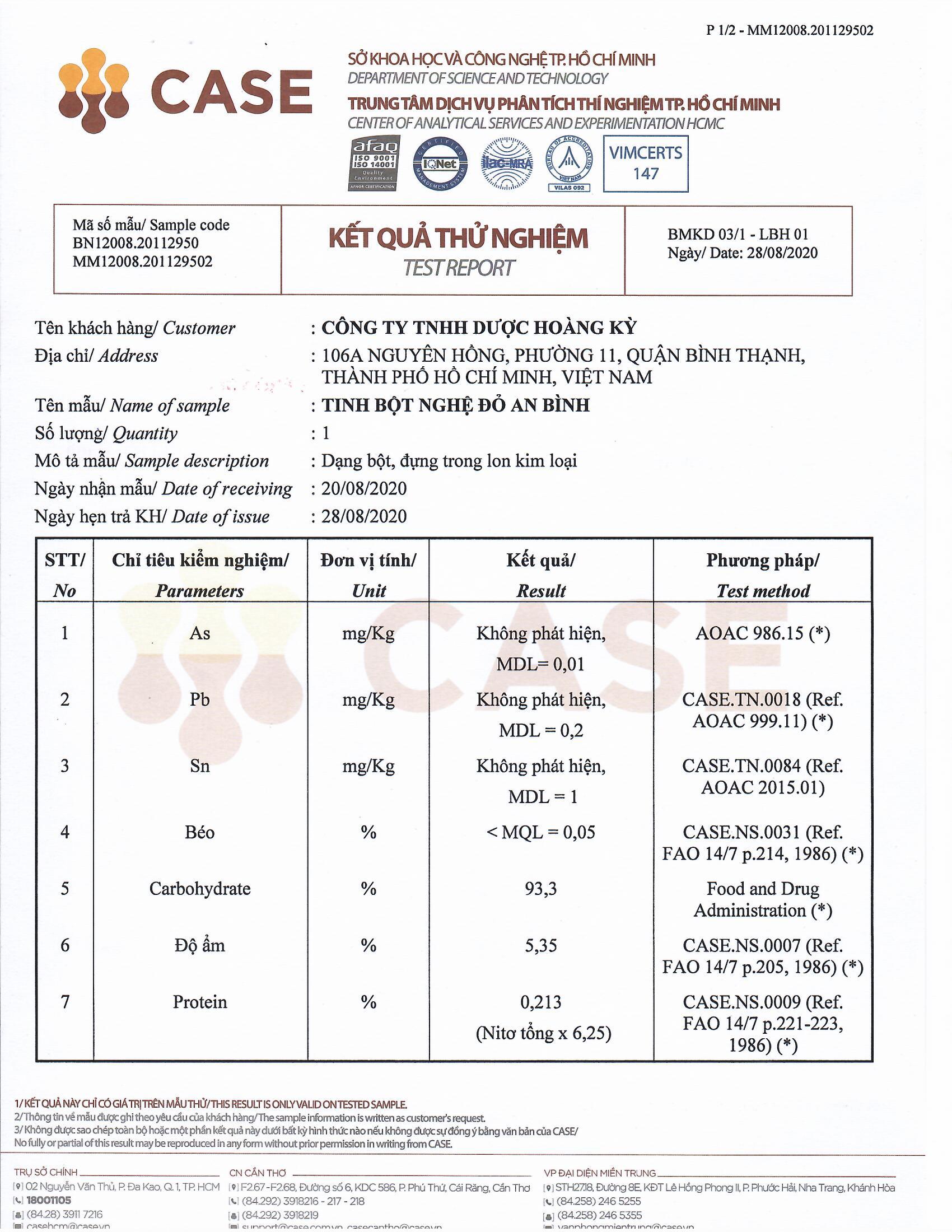 THÀNH PHẦN: nguyên chất 100% tinh bột nghệ vàng Combo sản phẩm gồm 2 lon, mỗi lon 500gr Hàm lượng curcumin từ: 88 - 758mg/kg Không chất bảo quản, không phẩm màu Đã tách dầu,