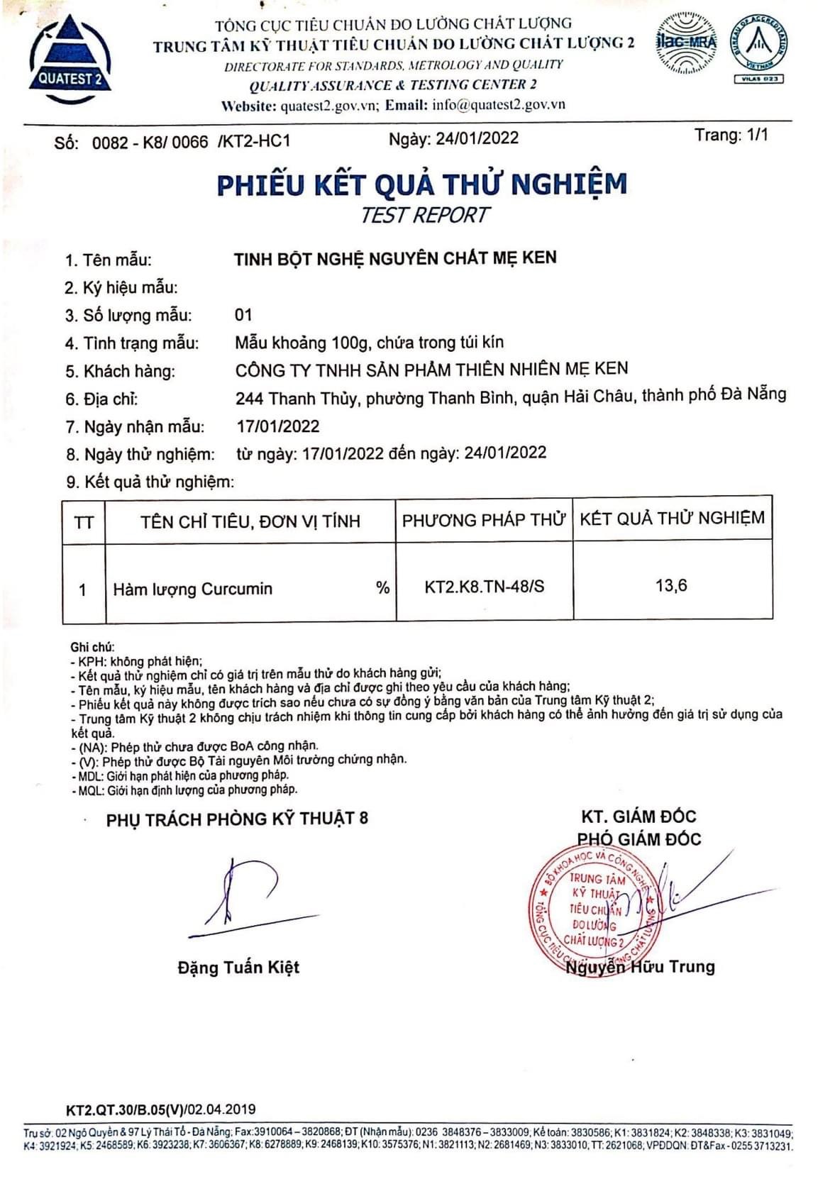 TINH BỘT NGHỆ là tinh chất được chiết xuất ra từ củ nghệ vàng có thành phần chính là chất curcumin 13.6 Tinh bột nghệ mẹ ken đã được BỘ Y TẾ kiểm định