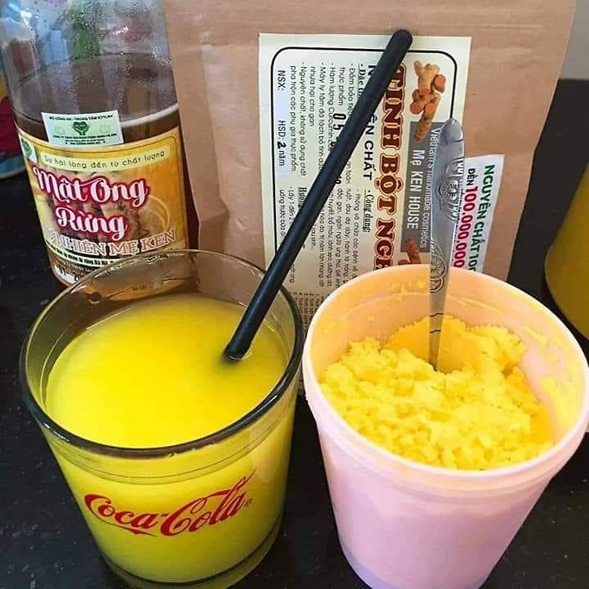 2.Tinh bột nghệ + mật ong + sữa chua