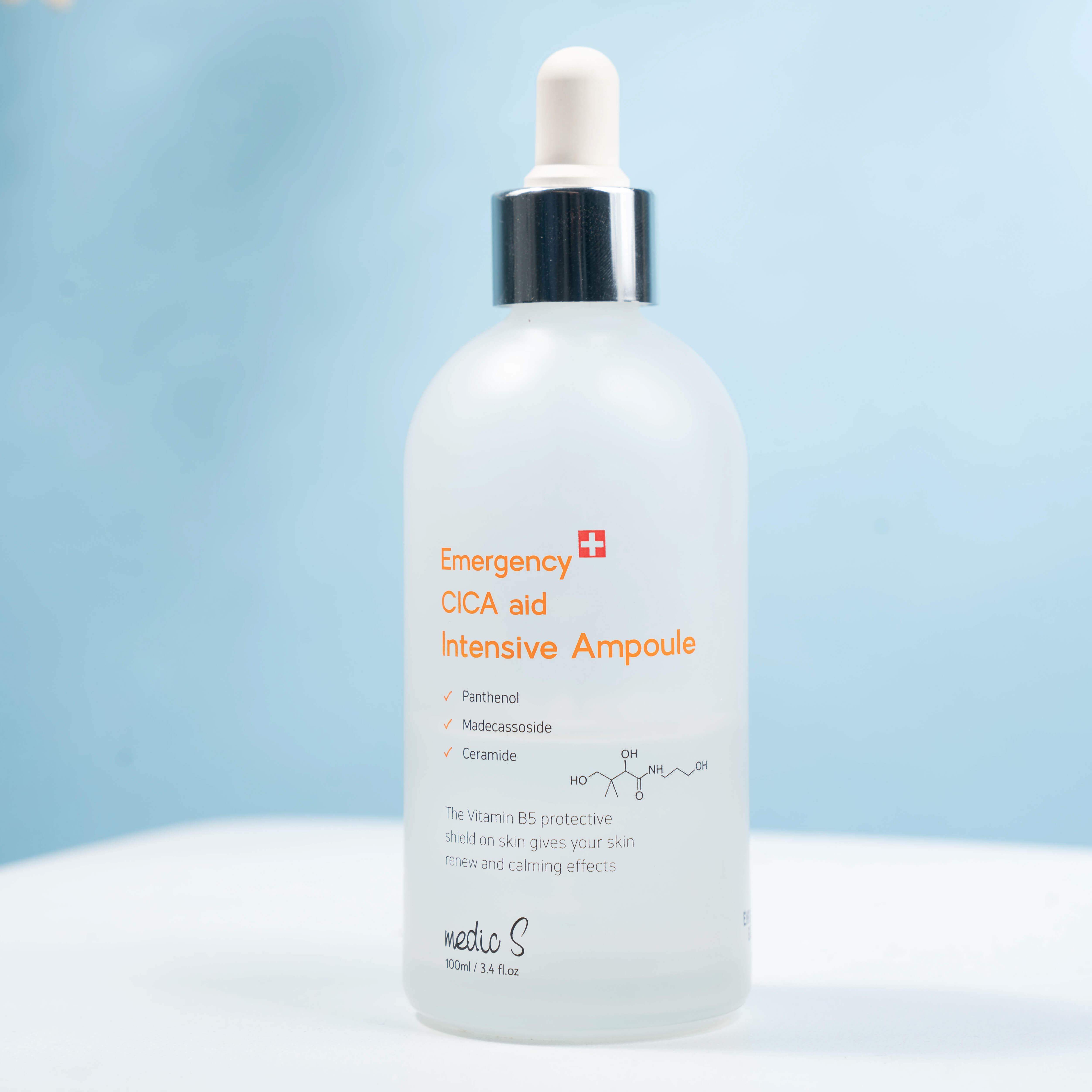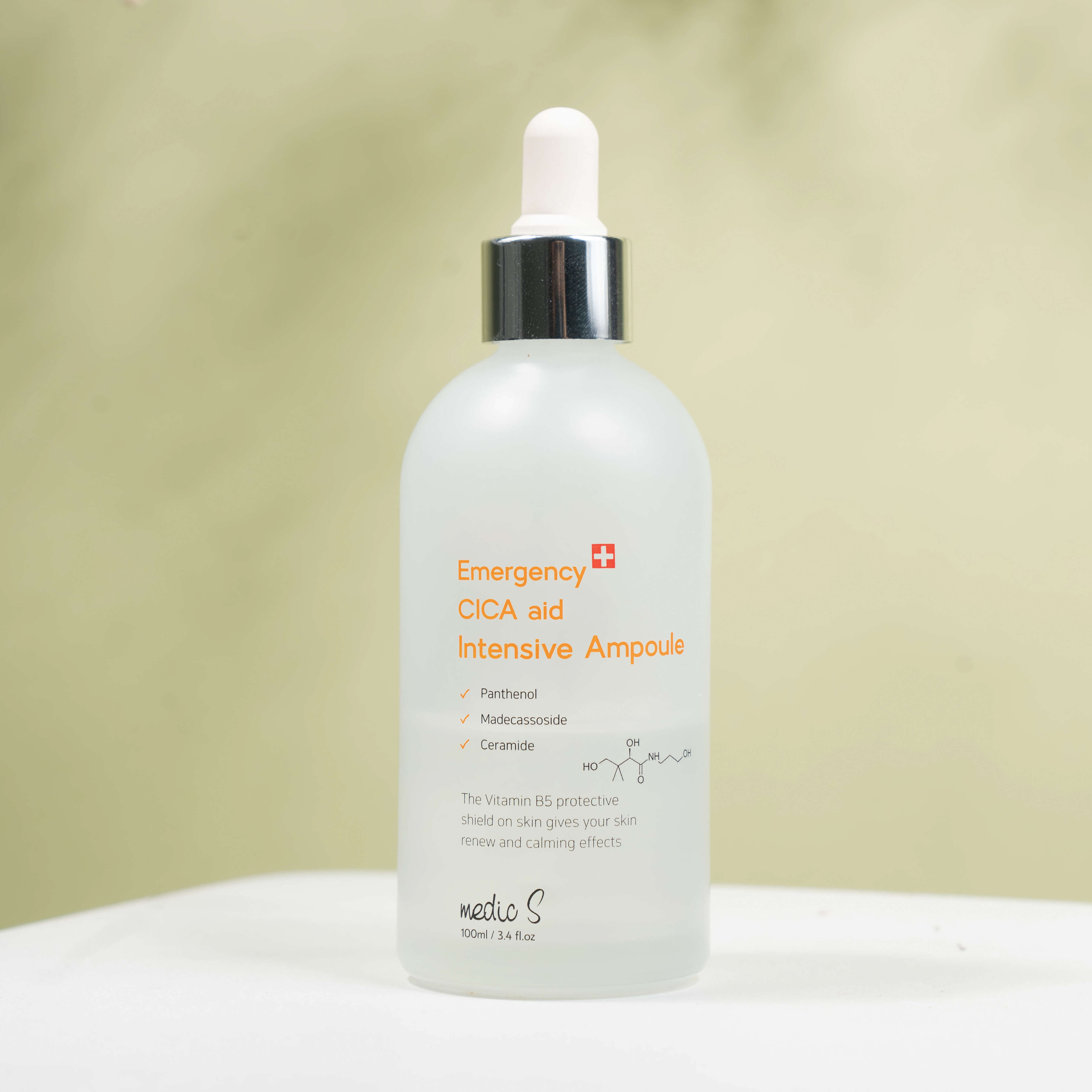 - Tinh chất căng bóng, cấp ẩm và mềm mịn – Emergency CICA aid Intensive Ampoule – Renew and Calming là sản phẩm cấp ẩm tuyệt vời cho làn da. Tinh chất căng bóng cấp ẩm và mềm mịn MedicS sẽ cung cấp độ ẩm dồi dào cho da, giúp hạn chế tình trạng mất nước, giúp cho làn da luôn tươi mát, căng bóng và mềm mịn. Tinh chất căng bóng cấp ẩm và mềm min MedicS có chứa Argan oil, là một loại dầu hiếm được chiết xuất từ hạt của quả cây Argan, hỗn hợp các loại axit béo omega, vitamin E, axit linoleic trong tinh dầu argan giúp dưỡng ẩm dịu nhẹ, làm mềm vùng da khô ráp, giảm tình trạng nhờn, mụn và có thể thấm sâu nuôi dưỡng từng tế bào da, chống lão hóa và giúp da săn chắc. Trong công thức có chứa Centella asiatica với thành phần hoạt động chính là các Triterpenoids Pentacyclic giúp cải thiện sức bền của da, cấp ẩm tuyệt đối, làm chậm quá trình làm sạm, nám da, giúp da căng mịn, tươi trẻ, trắng sáng hơn và Ceramide giúp thiết lập hàng rào bảo vệ da tối ưu.