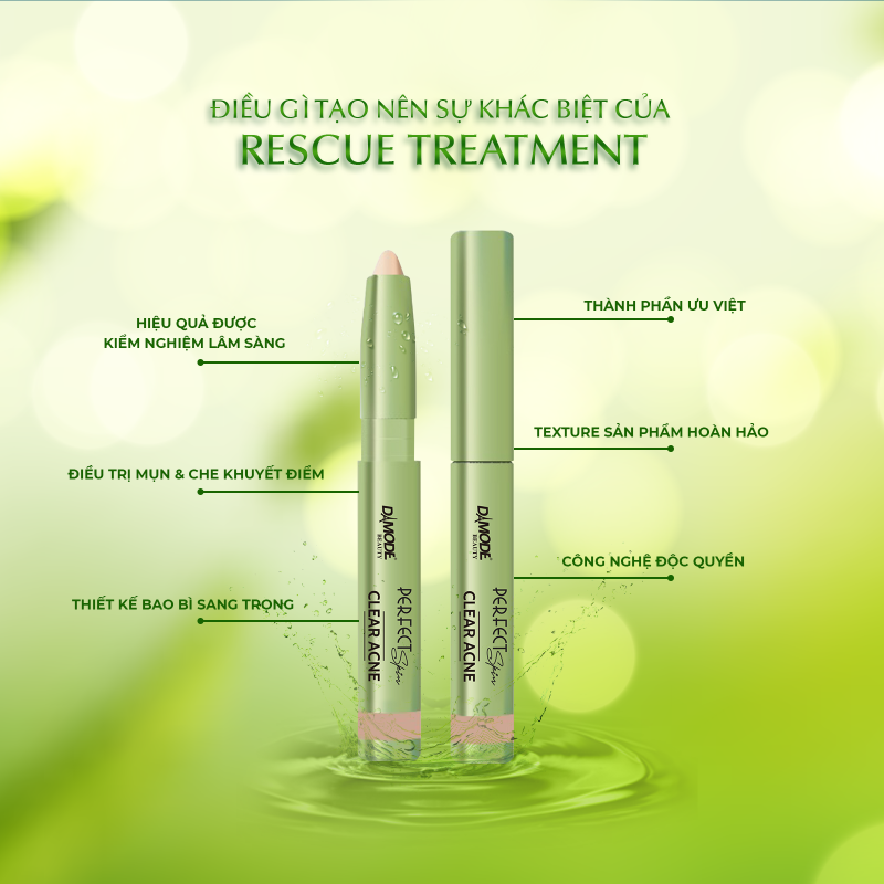 - Ngăn ngừa thâm và sẹo mụn Trị mụn và che khuyết điểm cấp tốc Clear Acnes Rescue Treatment có tốt không? Ra mắt lần đầu tiên tại Việt Nam có thể nói Clear Acnes Rescue Treatment là sản phẩm hiếm hoi mang đến 2 công dụng mà bất cứ chị em nào đang gặp phải mụn đều mong muốn. Chính là vừa che khuyết điểm của các nốt mụn viêm sưng đỏ. Vậy liệu Clear Acnes Rescue Treatment có tốt không? Theo kiểm đinh lâm sàn và khảo sát từ các chuyên gia Damode trên 100 người.