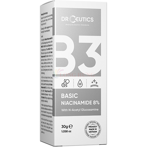 Tinh chất DrCeutics Basic Niacinamide 8%Thành phần: Niacinamide: Tạo hàng rào lipid, điều tiết dầu, hỗ trợ làm giảm và cải thiện tình trạng mụn. Bảo vệ khỏi tác hại của ánh nắng mặt trời. Cải thiện...