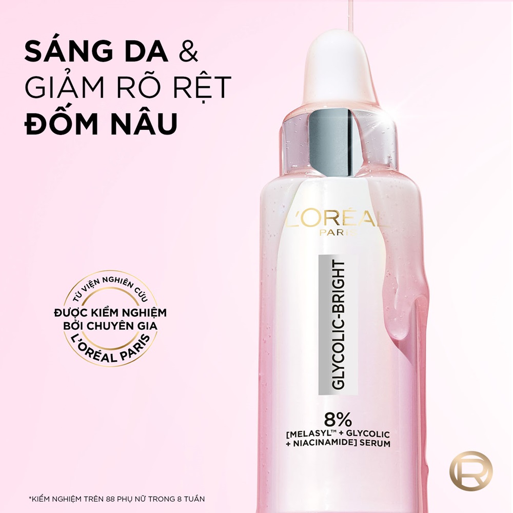 Tinh Chất L'Oreal Paris Dưỡng Sáng Da Glycolic-Bright Anti-Dark Spot Brightening Serum 30ml giúp làm sáng da tức thì, giảm các vết thâm nám.