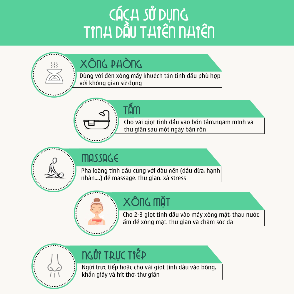 ► Không uống trực tiếp tinh dầu nguyên chất, tránh tiếp xúc với mắt.