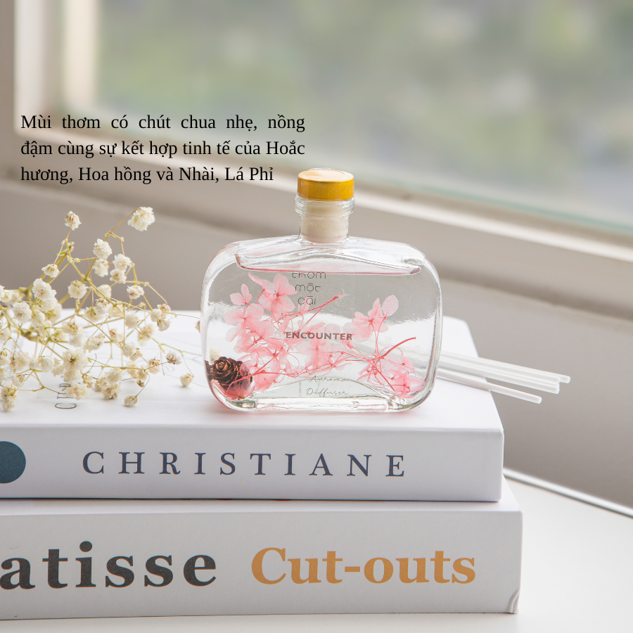 Encounter: Mùi thơm có chút chua nhẹ, nồng đậm cùng sự kết hợp tinh tế của Hoắc hương, Hoa hồng và Nhài, Lá Phỉ
