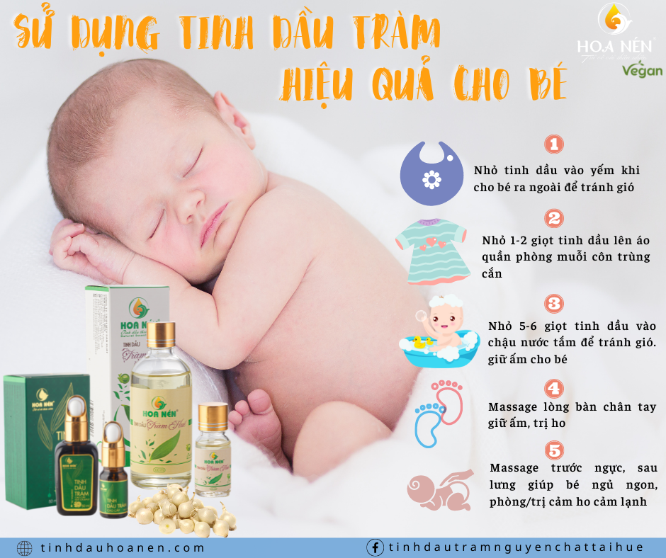 Cách dùng dầu tràm Huế tăng đề kháng cho bé hay ốm vặt | Tinh dầu tràm Lavenny