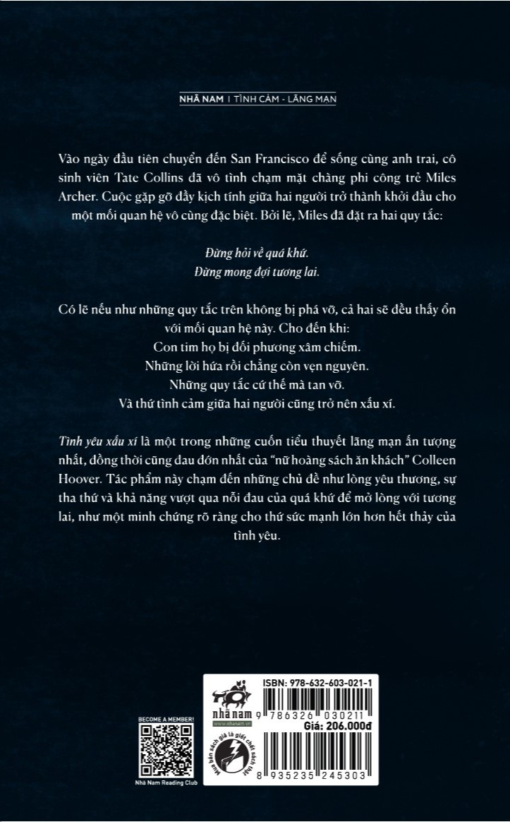 Tình yêu xấu xí là một trong những cuốn tiểu thuyết lãng mạn ẩn tượng nhất, đồng thời cũng đau đờn nhất của "nữ hoàng sách ăn khách" Colleen Hoover. Tác phẩm này chạm đến những chủ đề như lòng yêu thương, sự tha thứ và khả năng vượt qua nỗi đau của quá khứ để mở lòng với tương - lai, như một minh chứng rõ râng cho thứ sức mạnh lớn hơn hết thảy của tinh yeu.