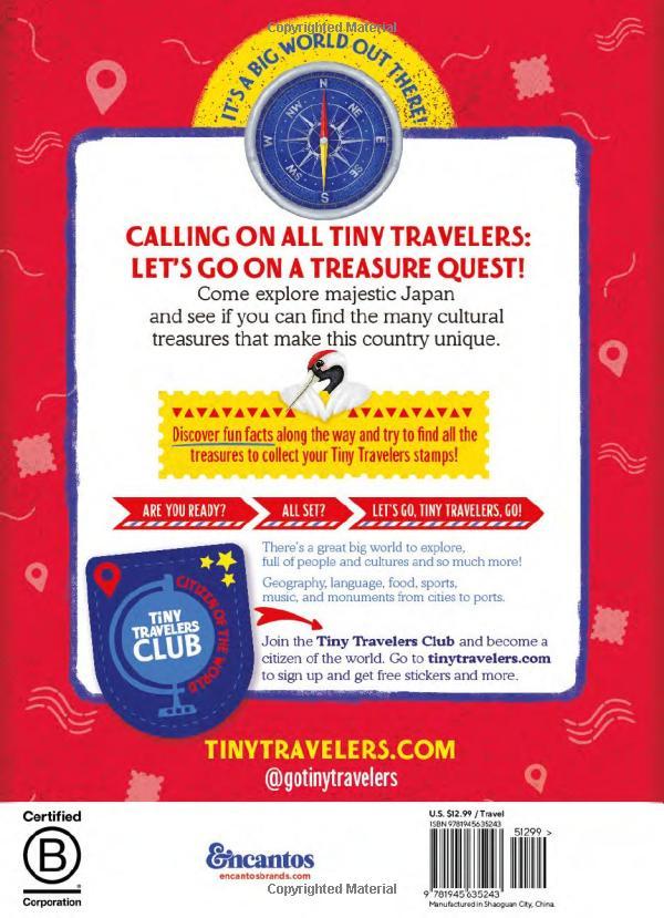 In Tiny Travelers Japan Treasure Quest, readers journey from the bustling capital city of Tokyo to the beautiful festival of the cherry blossoms (or Sakura) and to the summit of Mount Fuji. Tiny travelers will enjoy getting closer to Japanese culture in all its splendor.