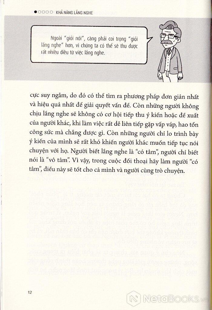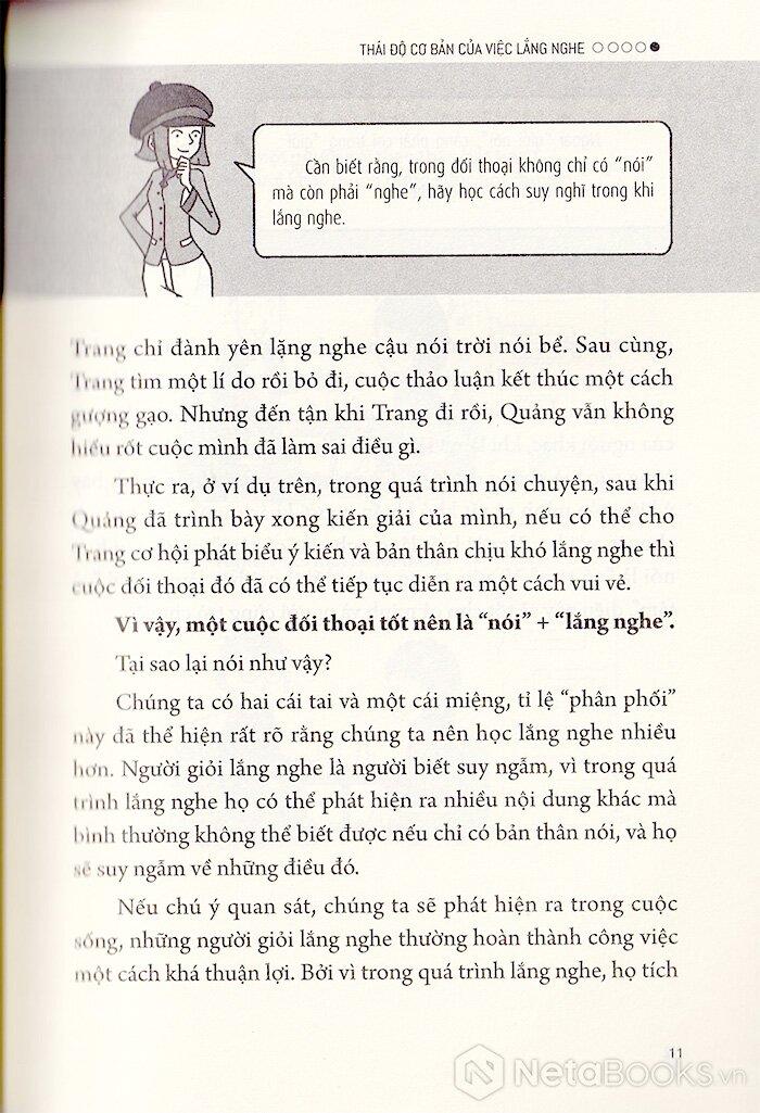 Lắng nghe là quá trình giao lưu đối thoại, cũng là quá trình giao lưu tình cảm của hai bên. Rất nhiều người nghĩ rằng lắng nghe nghĩa là chỉ cần nghe thôi là đủ, mà hoàn toàn không hề biết là phải học hỏi rất nhiều mới biết cách ‘nghe’. Người biết lắng nghe có thể khiến người nói ‘nói’ hay hơn, cũng sẽ nhanh chóng chiếm được lòng tin của người khác. Cuốn sách này sẽ chỉ cho bạn những kĩ xảo khi lắng nghe vô cùng hữu ích kèm theo ví dụ thực tiễn và minh họa sinh động, giúp bạn giỏi lắng nghe để có thể hợp tác tốt với mọi người trong công việc hằng ngày và nâng cao độ tín nhiệm của mình.