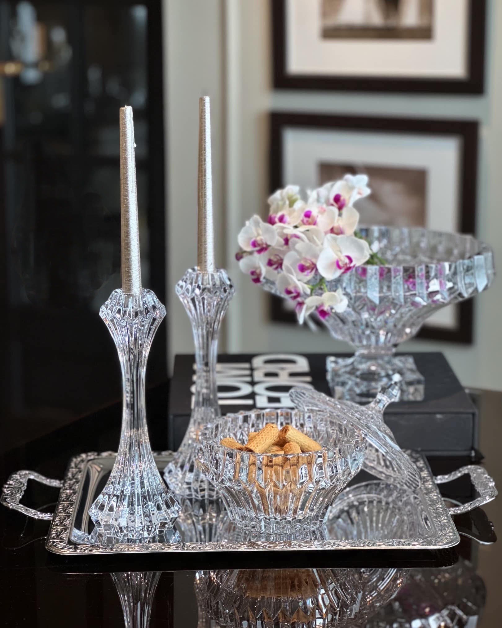 Chiếc thố sang chảnh của pha lê theo dùng trên bàn tiếp khách ngày Tết như đựng mứt kẹo, hoa quả sấy, ô