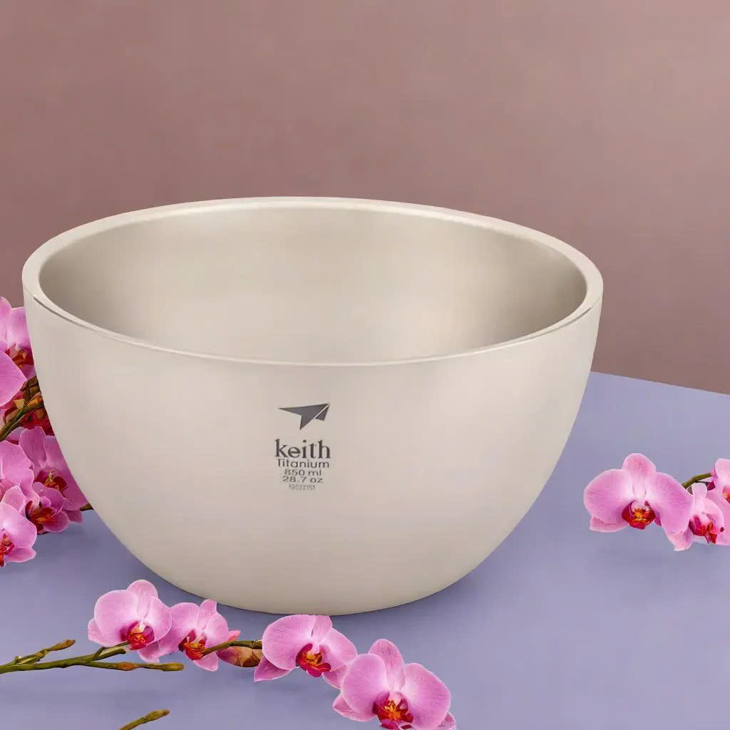 Tô chén ăn cách nhiệt 2 lớp Titanium Keith Ti5355 được làm bằng titan nguyên chất cao cấp loại 1 không có lớp lót và lớp phủ. Không vị, không mùi, không độc hại và an toàn với máy rửa chén.