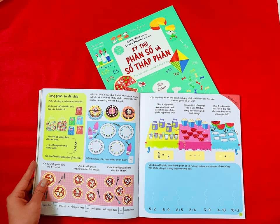 Những hoạt động rộn ràng trong sách sẽ giúp cậu giải toán phân số siêu đẳng, nhẩm số thập phân vèo vèo và tính phần trăm cực nhanh!