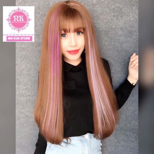 ✨Tóc giả cao cấp moc line hồng phấn- tặng lứoi chùm tóc
