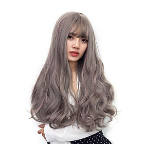 ✨Tóc giả cao cấp xám light hồng, tóc chịu nhiệt- tặng lưới chùm