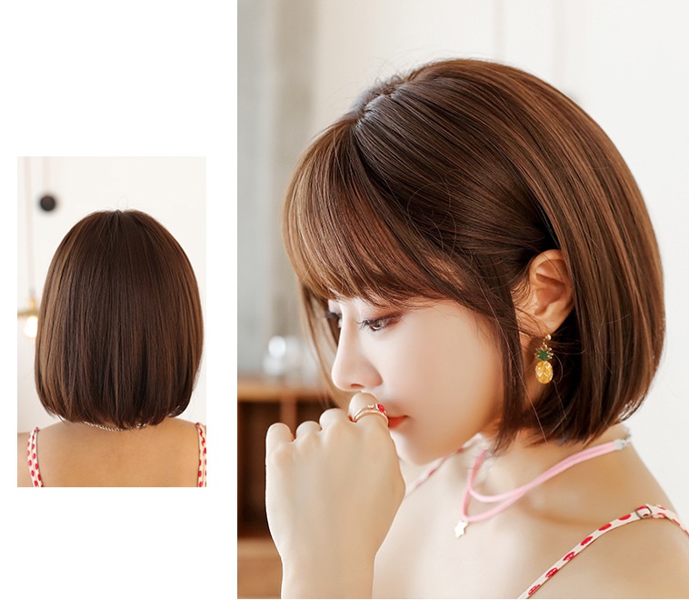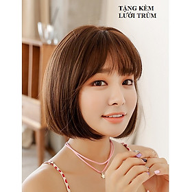 ✨Tóc giả nữ nguyên đầu hàn quốc, kiểu ngắn, mái thưa tặng kèm lưới trùm tóc, giống hình 90%, tóc tơ nhân tạo chịu nhiệt