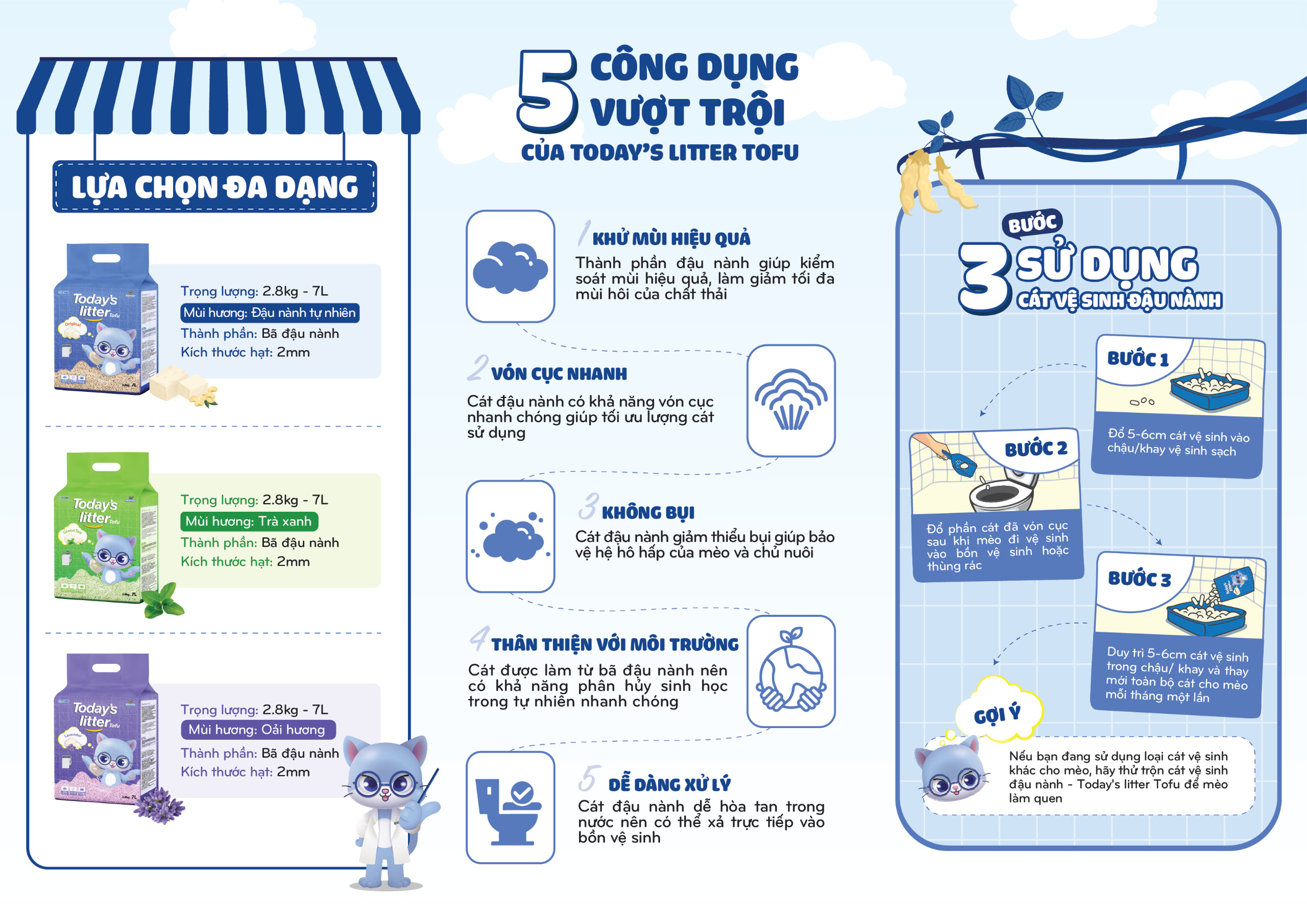 REVIEW cát vệ sinh cho mèo (cát đậu nành, cát đất sét, cát thuỷ tinh, cát gỗ)