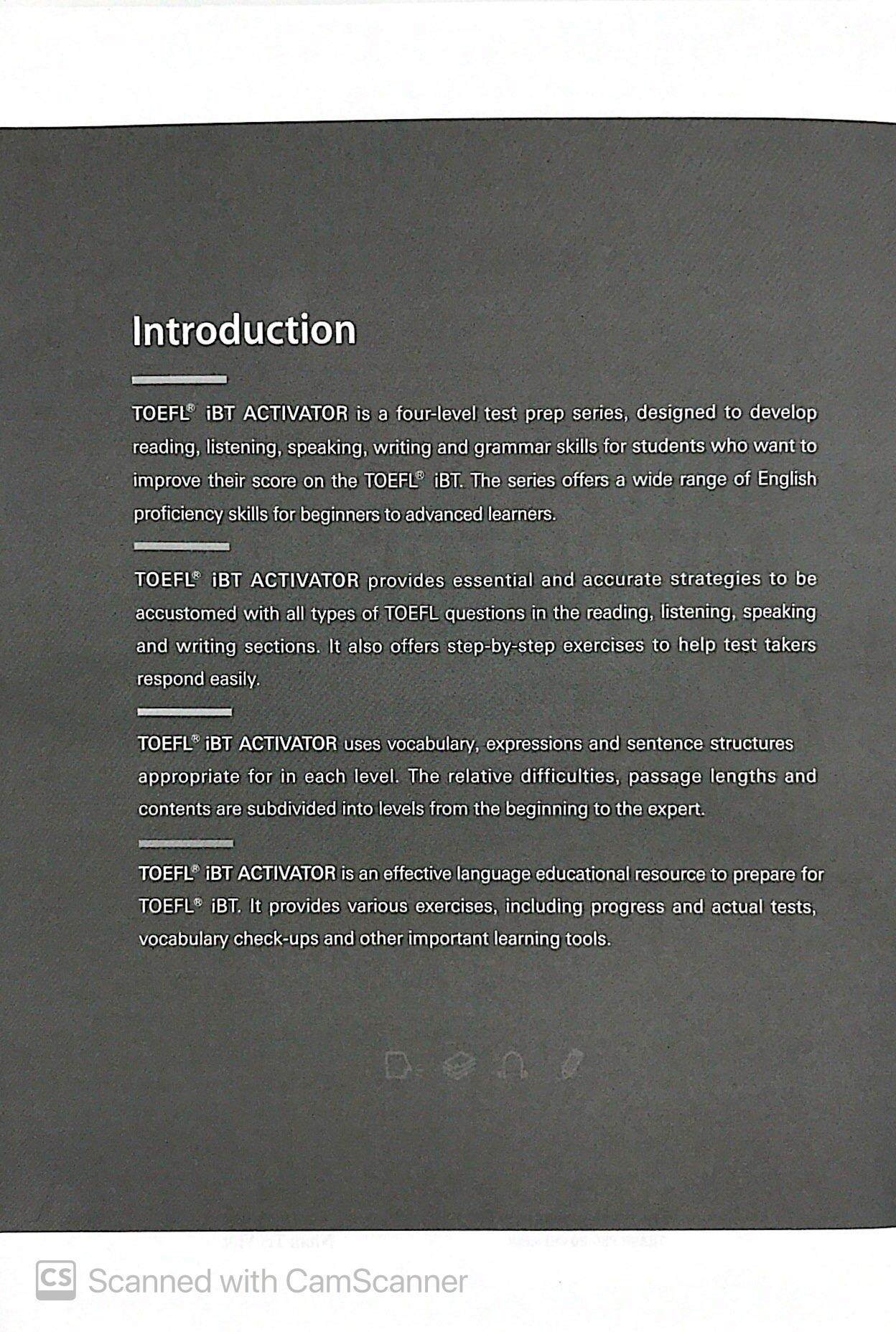 TOEFL iBT Activator Writing Advanced Toefl iBT Activator is a four-level test prep series designed to develop reading, listening, speaking, writing and grammar skill for students who want to improve their score on the Toefl