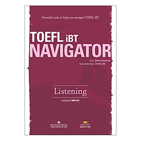 TOEFL iBT Navigator: Listening (Kèm 1 Đĩa CD) sẽ đáp ứng nhu cầu của tất cả các thí sinh đang chuẩn bị cho kỳ thi TOEFL iBT như nhân viên công ty sắp học cao học ở các trường đại học nước ngoài, sinh viên đi du học, học sinh trung học luyện thi vào trường chuyên. Bên cạnh đó, một số người lại chọn quyển sách này với mong muốn được tiếp cận với tiếng Anh nâng cao (chứ không phải vì mục đích thi cử). Quyển sách này đa dạng về nội dung cũng như hình thức nên tin rằng nó sẽ rất hữu ích cho bạn trong việc nâng cao trình độ tiếng Anh.