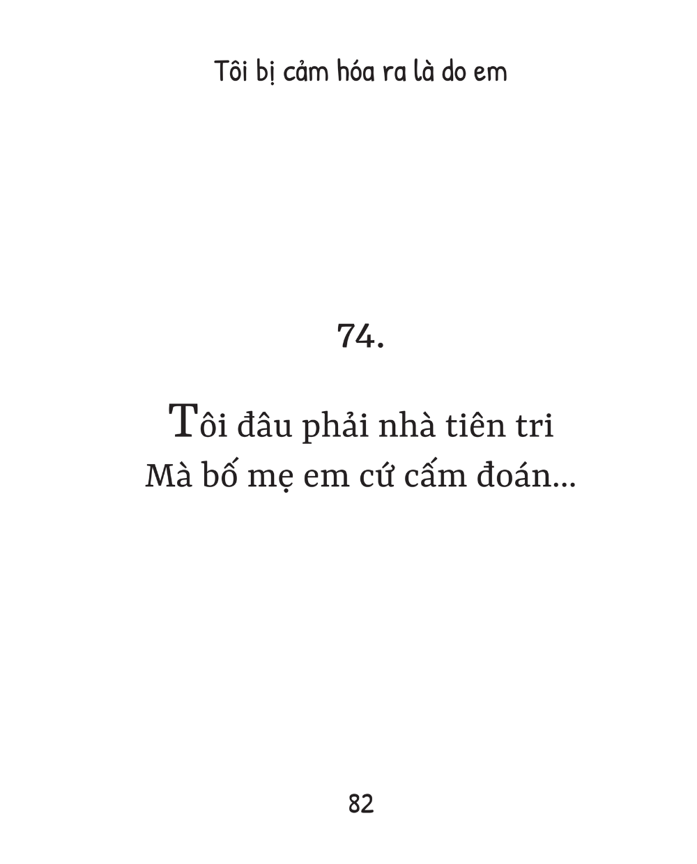 Với sự hài hước và thông minh trong cách chơi chữ, cuốn sách “Tôi bị cảm hóa ra là do em” chứa đựng những câu “rắc thính, gửi tình” siêu chất lượng: