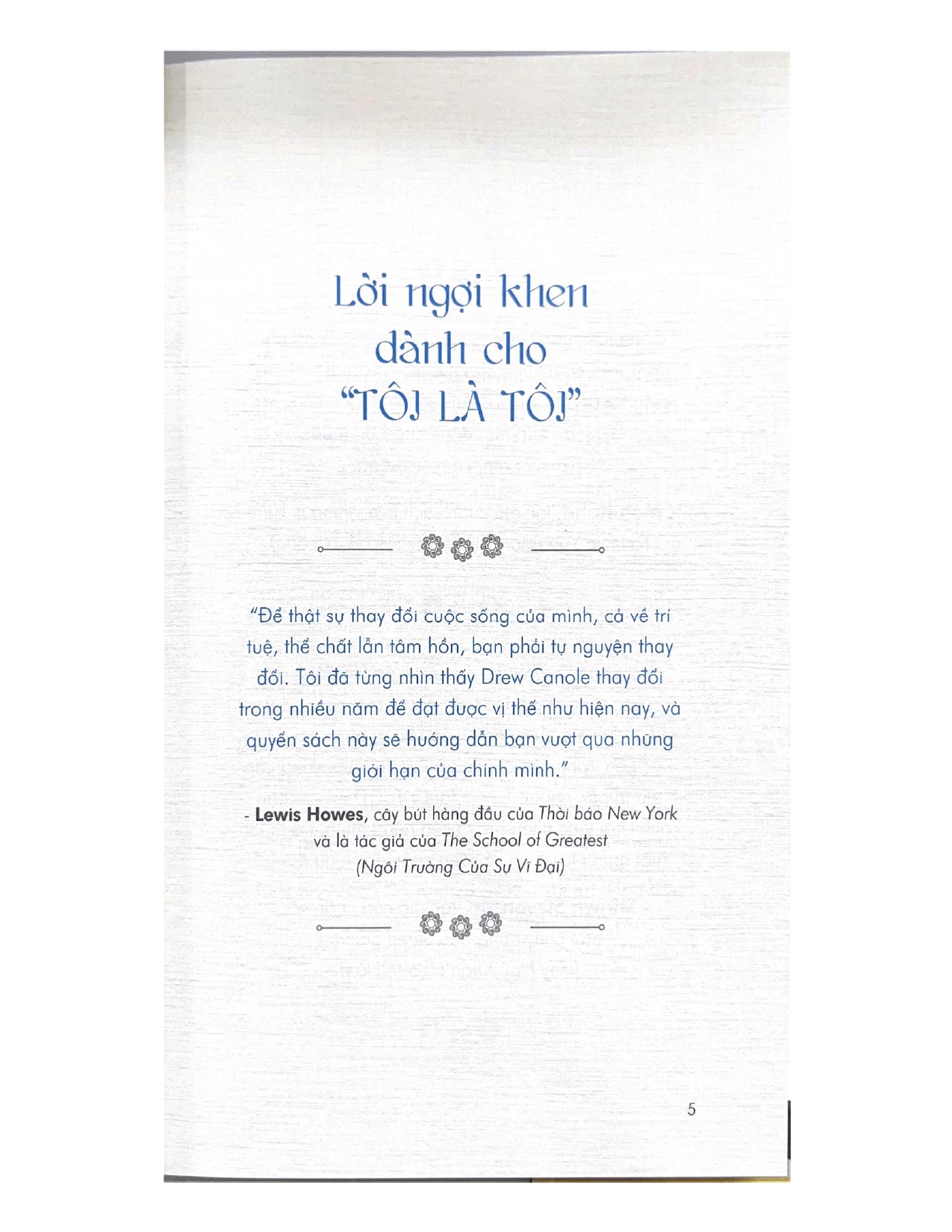 Tôi Là Tôi sẽ giúp bạn giải đáp những câu hỏi đó. Với ngôn từ dễ hiểu và không chút áp đặt, Drew Canole sẽ hỗ trợ bạn trên con đường xây dựng hành trình chuyển hóa bản thân, cùng bạn vượt qua mọi rào cản để trở thành phiên bản tốt nhất của chính mình. Hãy để ánh sáng của bạn chiếu rọi khắp thế gian!