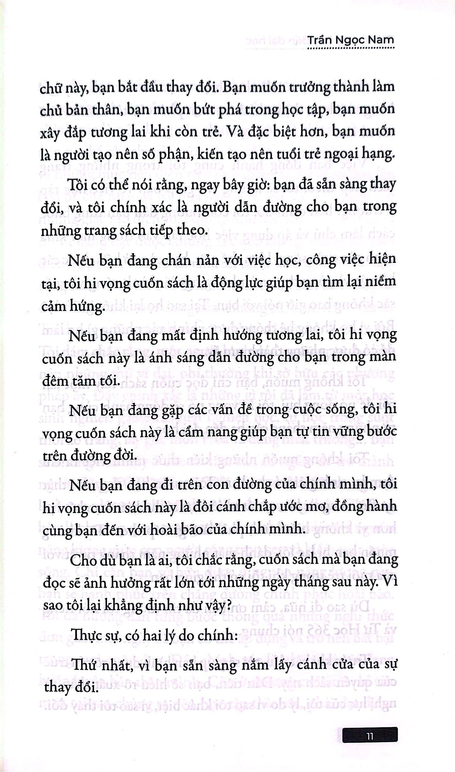 Còn ở chương cuối, tôi chỉ tản mạn tại sao chúng ta nên học tập thật tốt, phải đạt điểm số tối đa trong việc thi đại học… giúp bạn hiểu rõ hơn về cuộc chơi này và những lợi ích mà cấp ba mang lại. Đây là tóm tắt sách ư? Tất nhiên là không, làm sao có thể gói gọn mọi điều trong vài câu chữ như thế này được. Tôi mới chỉ nêu vài ý nổi bật để giúp bạn hiểu rõ hơn về những chặng đường mà chúng ta sẽ đi qua. Tôi đã hoàn thành nhiệm vụ của m.ình, bây giờ đến lượt bạn.