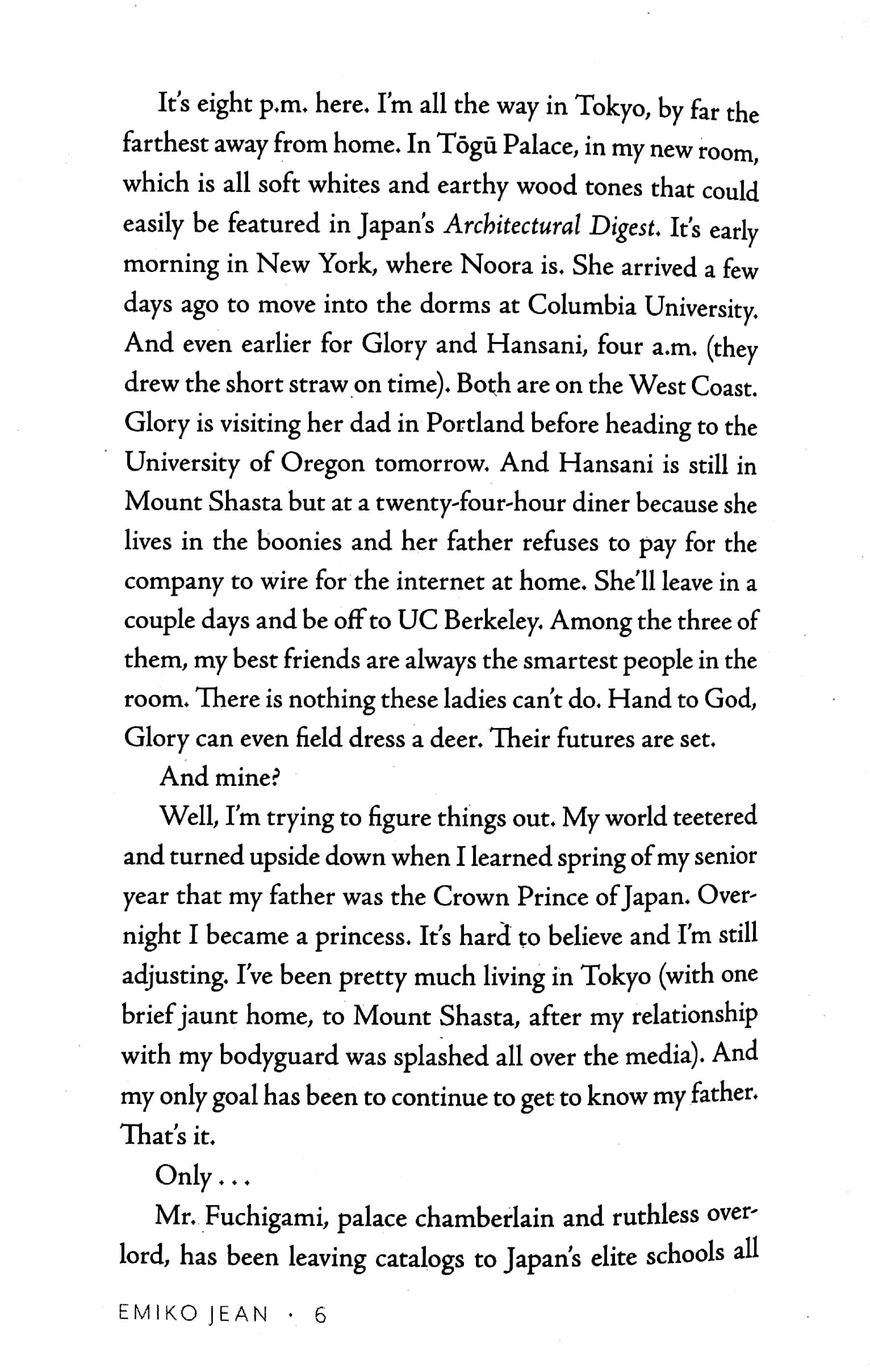 When Japanese-American Izumi Tanaka learned her father was the Crown Prince of Japan, she became a princess overnight. Now, she's overcome conniving cousins, salacious press, and an imperial scandal to finally find a place she belongs. She has a perfect bodyguard turned boyfriend. Her stinky dog, Tamagotchi, is living with her in Tokyo. Her parents have even rekindled their college romance and are engaged. A royal wedding is on the horizon! Izumi's life is a Tokyo dream come true. O
