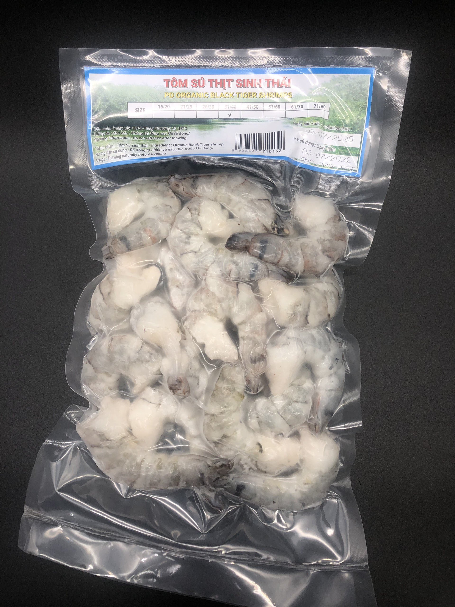 ***Tôm sú thịt sinh thái đông lạnh được đóng túi, cấp đông lúc tươi, tôm khi rã đông đảm bảo vẫn giữ được độ ngon và vị ngọt của tôm.