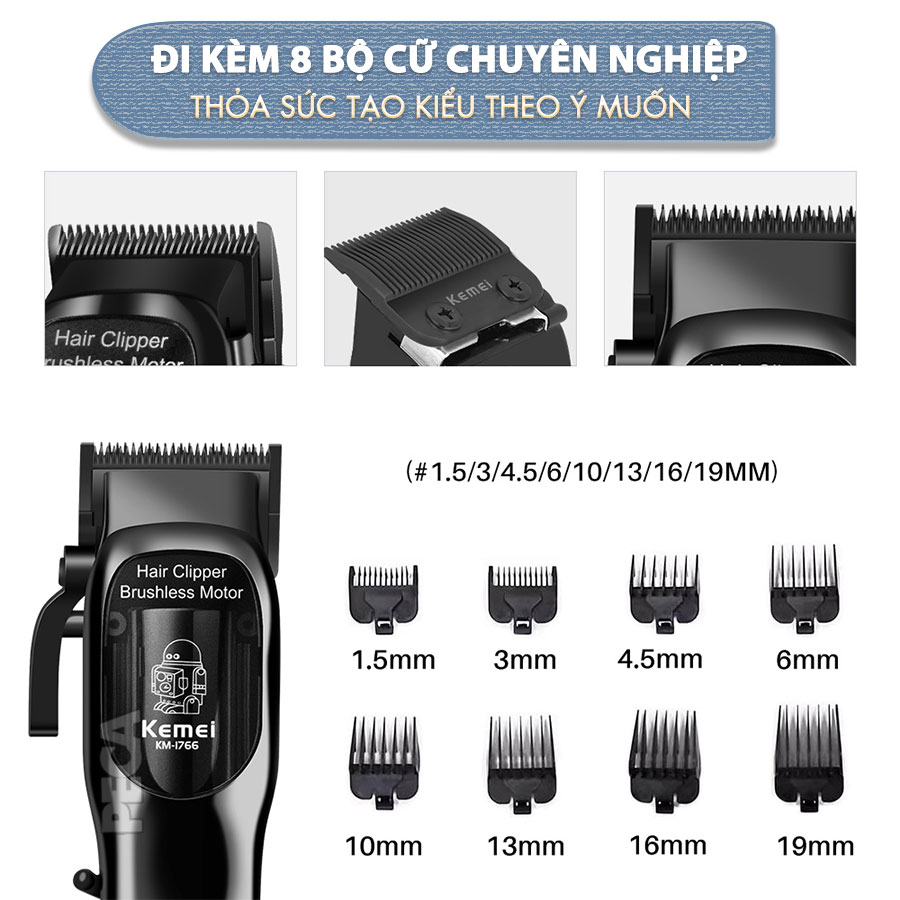 TÔNG ĐƠ CẮT TÓC CHUYÊN NGHIỆP KEMEI KM-1766 CÔNG SUẤT MẠNH 5W ĐỘNG CƠ KHÔNG CHỔI THAN, MÀN HÌNH LCD HIỂN THỊ SẠC, LƯỠI CẮT MẠ CARBON DLC CAO CẤP